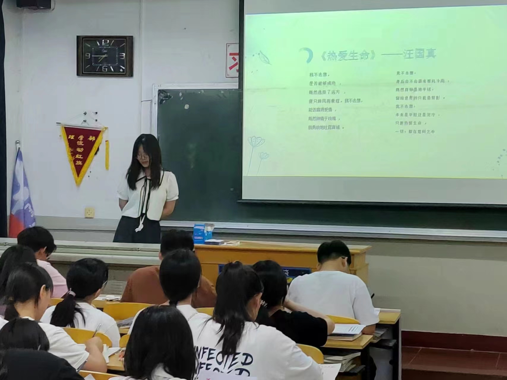 为进一步提高同学们的安全意识,2022级化学1班于5月22日在第二教学楼213教室开展了“安全之花,绽放光彩”安全教育主题班会。