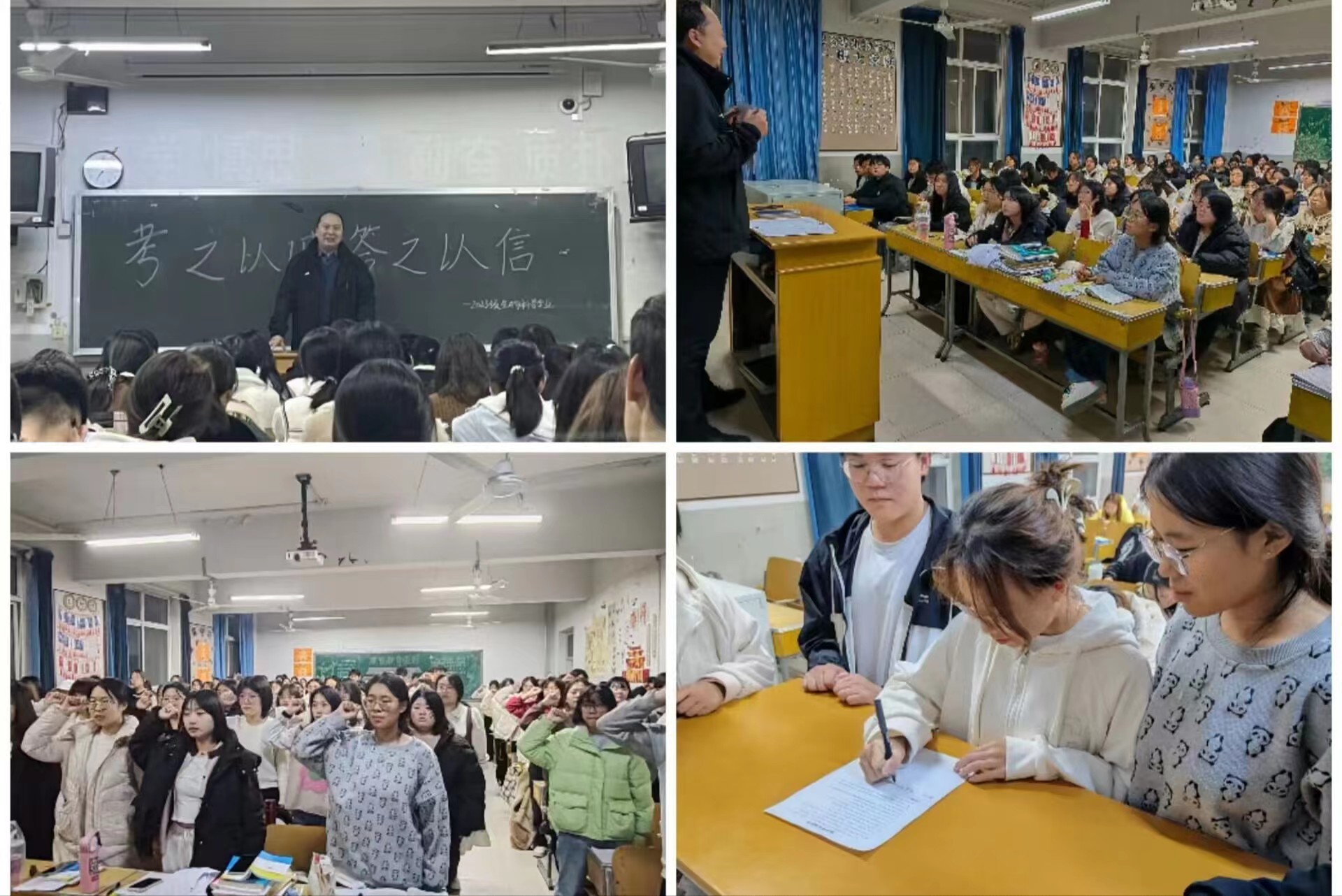 为帮助同学们更好地迎接期中考试,端正同学们的考试态度,严明考场纪律。2023级生物科学专业于11月22日晚在第二教学楼304教室开展“考之以诚,答之以信”主题班会,该班会由辅导员许志强老师主持,辅导员助理郭晓瑞、何睦协助开展。 会议伊始,许老师首先着重强调了诚信应考的重要性,对一个学生而言,如果丢失了诚信,不仅是对自己学生身份的不负责,更是对自己人生的不担当。其次,许老师结合真实案例,讲述了考试不当行为的惩罚措施,他提醒同学们切勿采取投机取巧的行为进行考试作弊。除此之外,许老师还特意讲述了考试的注意事项如座位的安排,考试的流程等,使第一次参加考试的同学们有了清晰的认知。之后,班长带领同学们进行诚信应考宣誓,同学们声音洪亮,态度端正,认真仔细地阅读了宣誓词和考场规定并在考试承诺书上签字。最后许老师表达了自己对同学们的深切期盼,他希望每一个学生都能放平心态,认真备考,正常发挥,日后的每一场考试都能顺利通过。 诚者,天之道也;思诚者,人之道也。本次班会的顺利开展,不仅使第一次参加大学考试的同学们明确了考试流程,更使他们端正了考试态度,树立了诚信意识。相信经过此次班会,同学们一定能做到考之以诚,答之以信,超常发挥,取得优异的成绩。