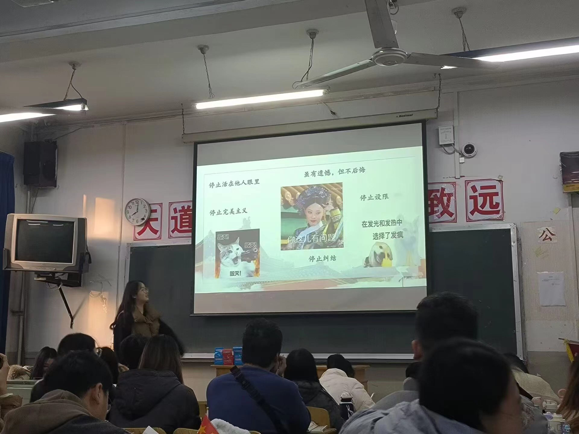 为了进一步提高本班同学的心理素质,促进同学的身心健康和谐,宣传普及心理健康知识,2023年11月28日上午,2022级化学2班在第二教学楼214室开展了“停止精神内耗,拒绝怀疑自我”心理主题班会。 首先,心理委员通过文字事例向同学们分享了关于精神内耗的案例,并讲述了什么是精神内耗以及精神内耗的表现和危害,引发同学们广泛而深刻的思考。接着,通过同学们积极发表身边真实遇到的内耗现象,心理委员和同学们共同分析了存在内耗的原因:一、考试制度以及成绩的压力;二、睡眠不足和不规律的饮食;三、同学间的矛盾和冲突不断;四、心理压力大等。最后,心理委员和同学们共同探讨出了解决内耗的一些实用方法:一、正确认识朋友,看开别人对自己的评价;二、以积极乐观的心态去解读事情,关注美好时刻;三、多阅读心理成长类书籍;四、培养成长型思维,有问题时专注找方法解决。 本次主题班会活动,不仅加深了同学们对精神内耗的了解,而且有利于帮助同学们停止精神内耗,调整学习状态。在往后的日子里,希望同学们都能做情绪的主人,停止消极的精神内耗,拒绝怀疑自己,我们永远值得一切美好。