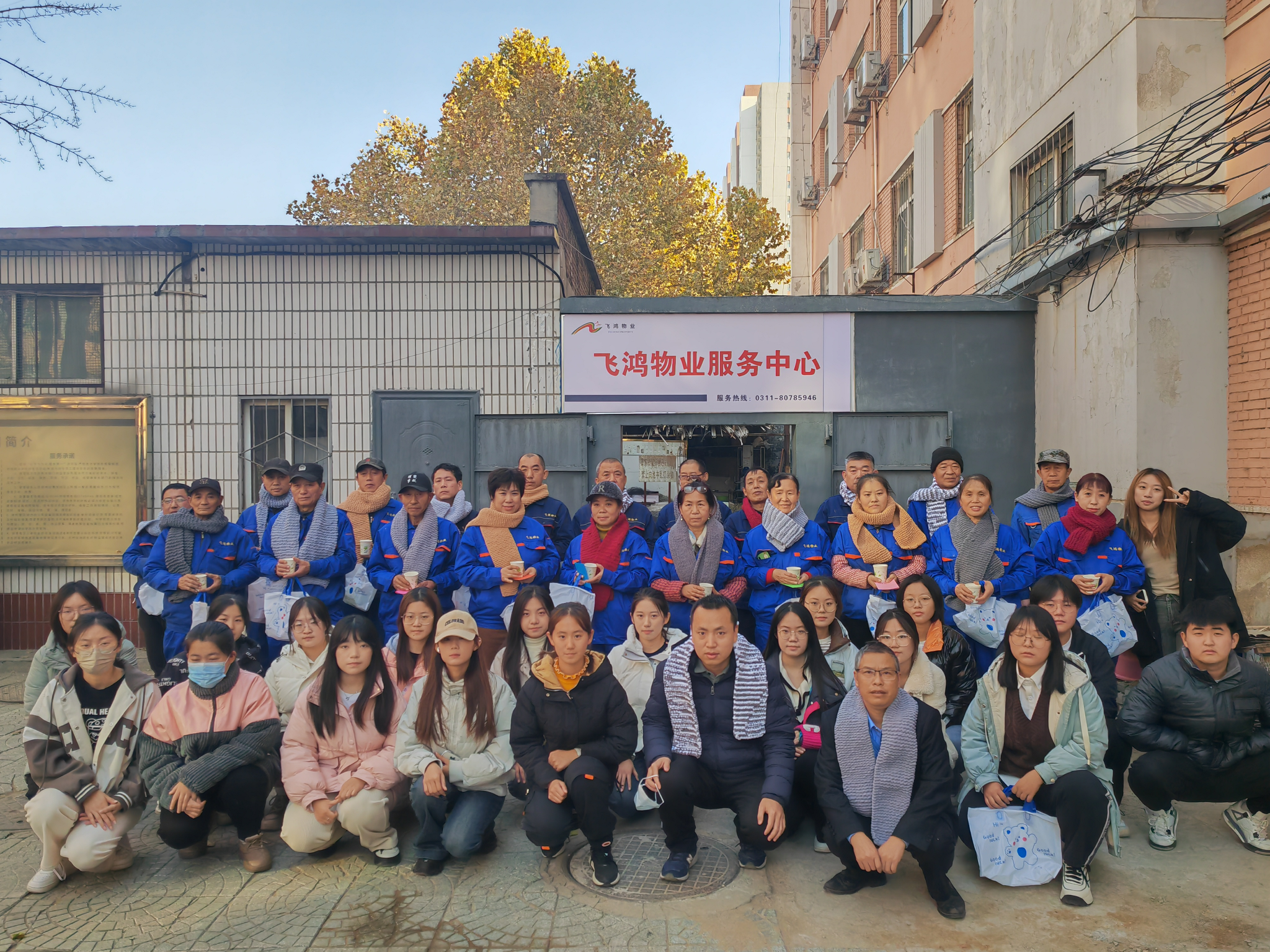 冉冉晨雾重,晖晖冬日微。为了表达同学们对校园环卫工人的关心与感谢,让环卫工人在这个冬天不再寒冷,同时促进理学学子凝心聚力,彰显理学学子爱心。理学部借助“大雪”节气契机开展了“围暖寒冬,针情相伴”的温暖活动。 志愿者们用心编织、用情承载、用爱传递。理学部各班代表与环卫工人齐聚在校园物业,张旭朝老师致开场词,字字体现关心,句句彰显温暖。随后,同学们亲手为环卫工人戴上用爱编织的围巾,并且贴心的为环卫工人倒上一杯热水,不仅暖在手里更是暖在了心中。现场满是同学们对校园“美容师”的敬佩与感激之情,同学们也深刻体会到了环卫工人“宁愿一身脏,换来校园净”的精神。活动在不知不觉中接近尾声,志愿者与环卫工人拍照留念,将爱定格在此刻。