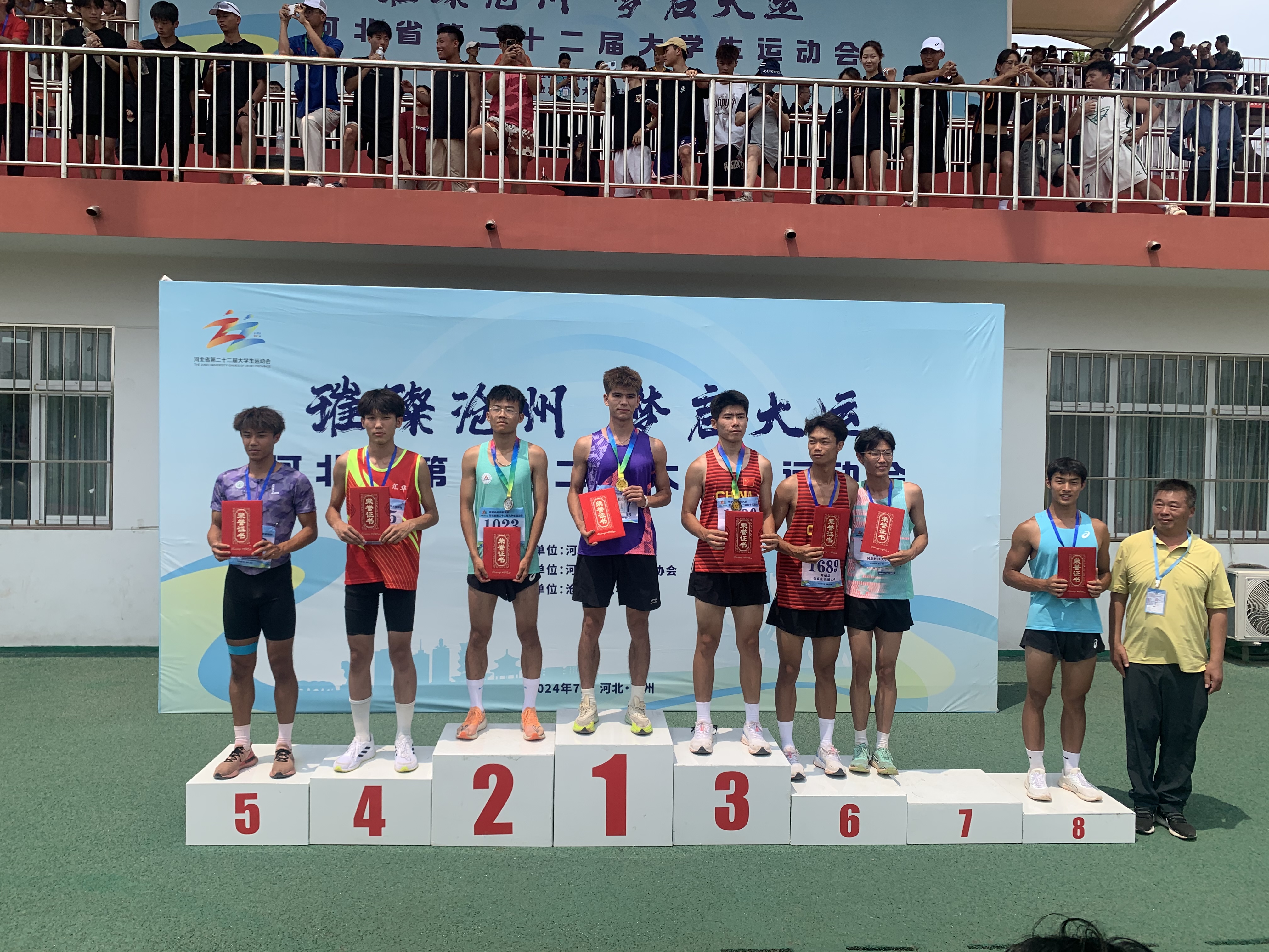 7月8日至11日,河北省第22届大学生运动会田径项目比赛在沧州师范学院展开角逐。学院田径队员们在教练的指导下,在异常激烈的竞争中,经过奋力拼搏,取得了优异的成绩,为学院在全省大学生运动会赛场上赢得荣誉。 在7月11日举行的男子甲组跳高比赛中,田径队运动员2023级数学与应用数学专业栗星宇同学以1.83米的成绩夺得该项目第4名。这是学院参加省大学生运动会跳高项目以来取得的最好成绩。