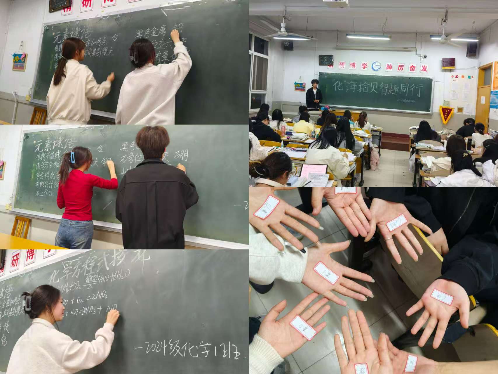 为激发同学们对化学学科的热爱,增强学习趣味性和班级凝聚力,同时提高同学们的思维与合作能力,2025年3月26日,2024级化学1班的同学们在第二教学楼213教室开展了“‘化’海拾贝,智趣同行”趣味学习活动。在活动中,同学们积极参与,整个班级都充斥着浓郁的学习氛围。