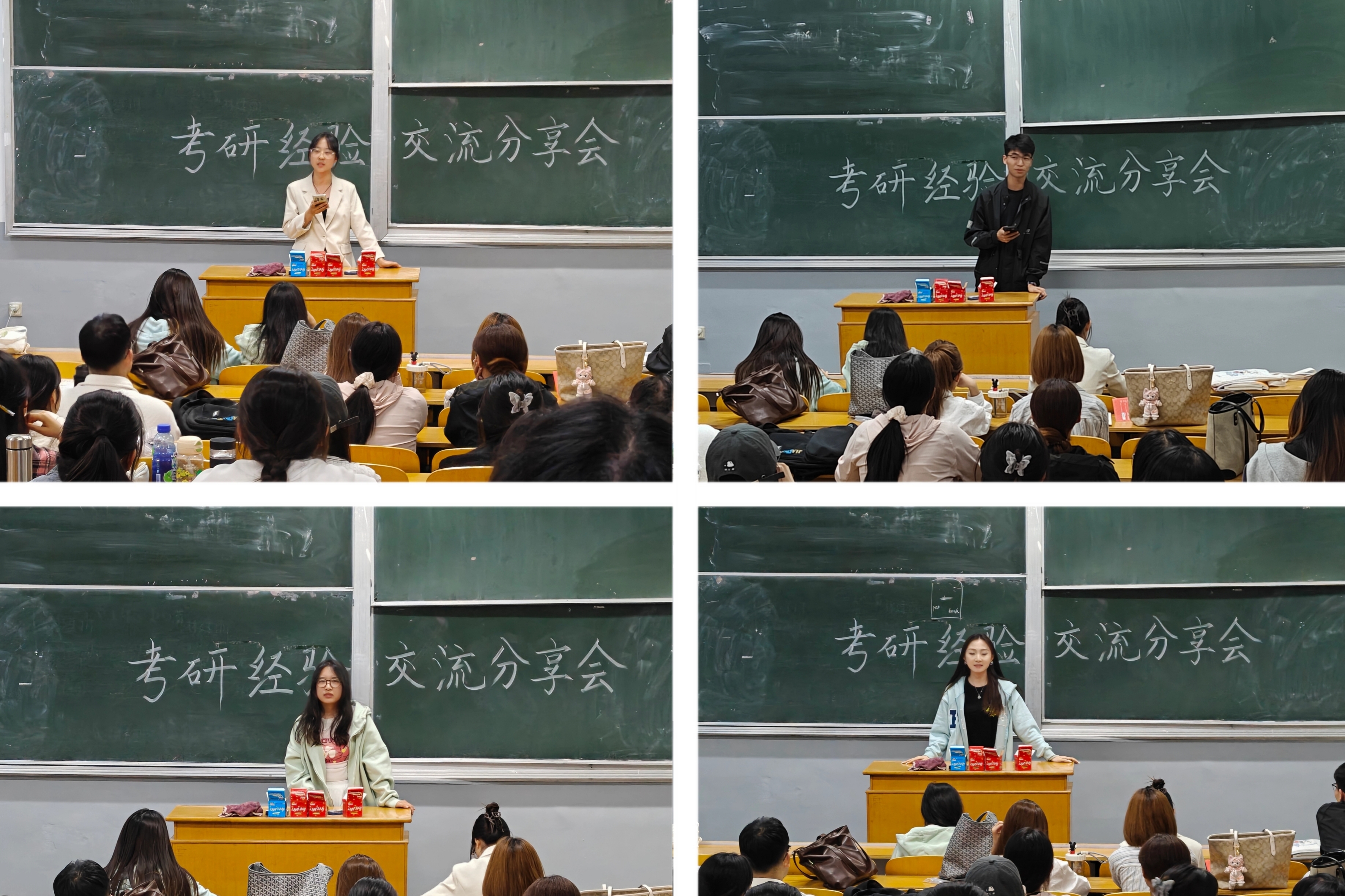 为帮助在校学生科学规划考研备考,看清考研形式,营造积极向上的浓厚考研氛围,4月22日晚,2022级数学与应用数学专业于第二教学楼204教室成功开展“薪火相传,研路领航”考研经验交流分享会。本次交流会邀请到4位2025届考研成绩优异的学生代表,涵盖不同院校的备考经验,数学与应用数学专业120名学生参与,现场座无虚席,互动热烈。