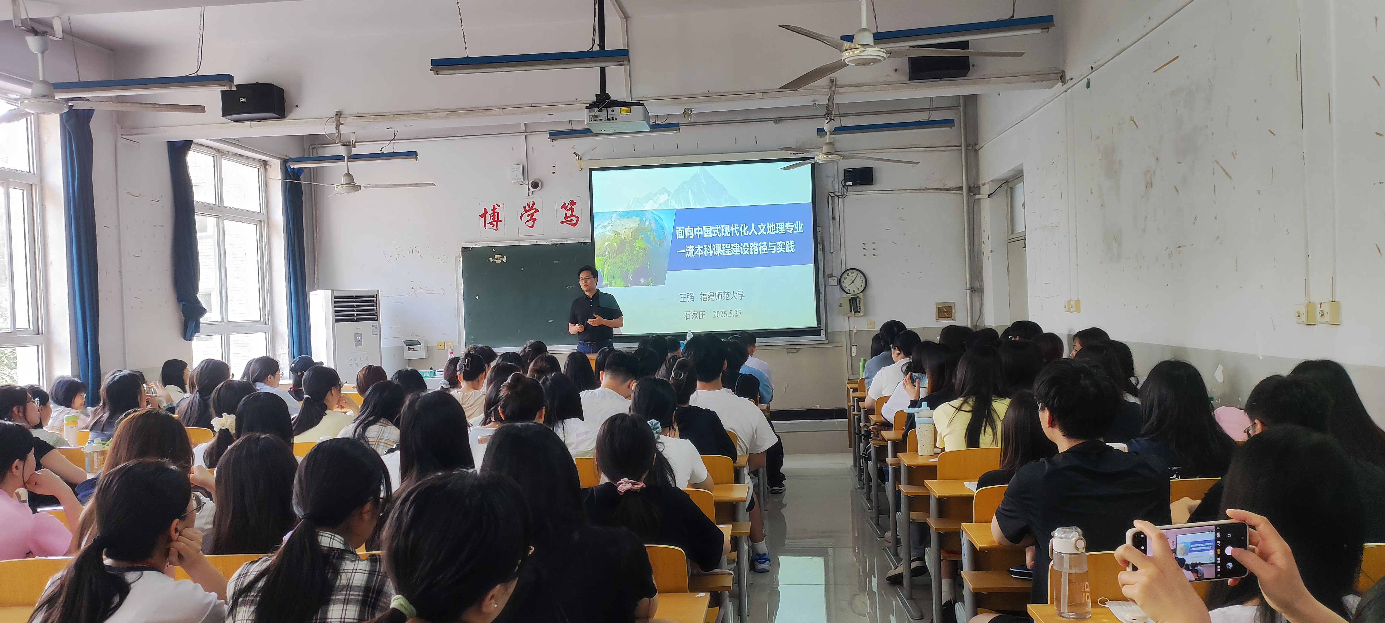 5月27日,福建师范大学地理科学学院王强教授应邀到Beat365做客“汇华名家讲堂”,在第二教学楼205教室作题为“面向中国式现代化人文地理专业一流本科课程建设路径与实践”和“碳中和背景下中国能源转型与地理学者的思考”的学术报告。理学部部长张增水主持讲座,理学部地理科学专业120余名师生到场聆听。 王强教授从人文地理与城乡规划专业建设的角度出发,结合工作实际,从教改背景、研究现状、研究展望三个维度,深入分析了中国式现代化大背景下,作为新文科发展的城市地理学教学改革的理念与目标、教学痛点、创新思路和举措,详细介绍了课程教学改革的三维融合、四步协同、五项评价改革方法。王强教授的内容系统性强,实用性高,对于即将参加顶岗实习的学生们来讲大有裨益。王老师还与在场的学生进行了互动,既解答了学生们在专业学习与实习准备中的困惑,更点燃了同学们对学业学习的探索热情。
