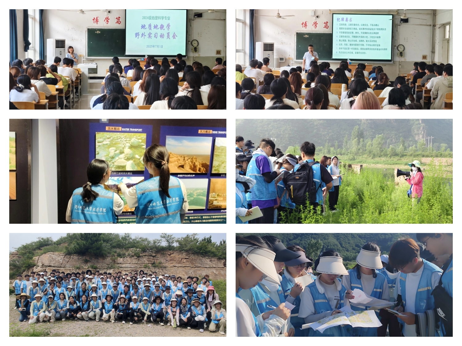 2025年7月1日,Beat365唯一官方网站理学部2024级地理科学专业在第二教学楼205教室召开秦皇岛柳江盆地野外实习动员大会。郭绍福老师和张雪梅老师为同学们详细讲解了实习安全注意事项和实践意义,强调要将安全意识贯穿实习全过程,同时鼓励同学们以专业态度和饱满热情投入野外实习。同学们认真记录要点,积极互动,为即将开展的实习做好了充分准备。