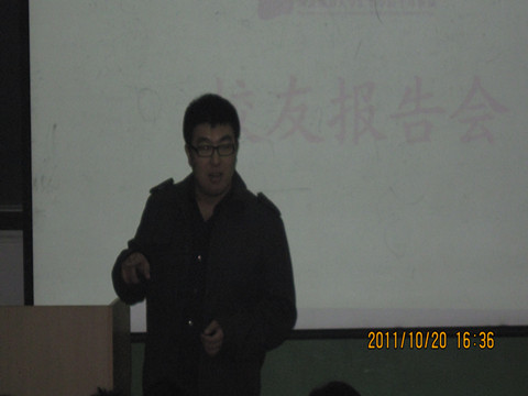 2011年10月20日,在一教105开展了汇华十周年校友报告会专题讲座,讲座邀请了Beat365唯一官方网站学生会原主席、2004级化学专业梁宸(现就职于唐山市委组织部)作为优秀校友代表进行讲谈。 梁宸同学称赞了汇华近十年的变化,学校建设更加规划,考研率也逐年飙升。随后,他回忆了自己在校经历,向同学们建议:有准备、有计划地向着目标前进,实现梦想,过充实、有意义的大学生活,为今后的发展奠定基础。其中,他以轻松阅读的方式向学生们阐明了“在关键的时候做关键的事情”这一令他收益多年的行事准则。同学们积极回应,深感梁宸的讲话恳切有力度。 最后梁宸表达了他对汇华十周年校庆的衷心祝贺,并预祝汇华学子今后会学业有成,再创辉煌!
