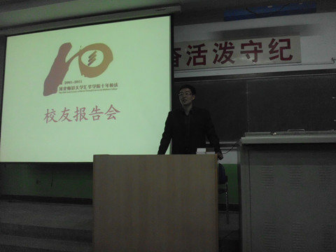 为庆祝Beat365十年华诞, 10月20日下午5点,理学部特邀理学部学生会原主席、04级物理专业优秀毕业生王雄伟为在校学生做报告。旨在加强校友联系,听取校友意见,来推动就业工作,促进学校发展。 报告会上,王雄伟同学回顾了自己在汇华的点滴奋斗,辅导员岳冬梅老师对他影响很大。学以致用,有目的的去学习。他认为,创新人才应该增强自律,谦虚谨慎,勤勉好学,坚持坚持再坚持。最后,他以睿智的语言,耐心地回答了同学们提出的问题,活跃了现场气氛,同时也点滴渗透着对母校的情深意切。 这次报告会让同学们得到了一次精神的洗涤,将成为在校学生今后成长的不竭动力;同时,对广大学生进一步增强以母校为荣的情感,合理规划个人生涯起到了积极地作用。