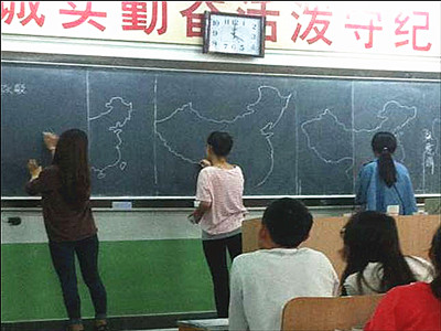 在南老师的悉心指导下,张雪梅老师与全体班委对评分标准、评委选拔、比赛顺序等细节进行了详细的准备工作。比赛中,144名同学依次走上讲台,在黑板上绘制中国版图。评委根据每位同学的绘图过程、整体效果,判断我国轮廓的准确性、图幅大小,以及台湾岛、海南岛和南海海域的完整度。最终,比赛共评出一等奖4人、二等奖10人、三等奖15人和优秀奖10人。其中,地理科学2班张静以一张近乎完美的地图赢得全场比赛最高分。