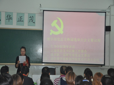 大会在庄严的《国歌》声中隆重开幕。上一届党总支书记王薇同志代表总支委员会会做工作报告,对上一届总支的工作进行了全面的总结,指出了工作中存在的不足,并提出了今后的努力方向。报告指出:两年来,理学部党总支在Beat365唯一官方网站党委的正确领导下,认真贯彻落实党的十八大和十八届三中、四中、五中全会精神,坚持围绕培养高素质学生这一中心工作,强化凝聚人心的工作思路,以为社会培养合格人才为目标,切实加强理学部党的思想建设、组织建设、制度建设和作风建设,为保证党的各项方针政策的贯彻执行、保证中心工作的顺利开展,提供了强有力的精神动力和思想组织保证,较好地完成了既定的工作规划和上级交办的各项工作任务。随后,大会通过了选举办法、监票人、计票人,经无记名投票方式差额选举产生了由5人组成的新一届理学部党总支委员会。