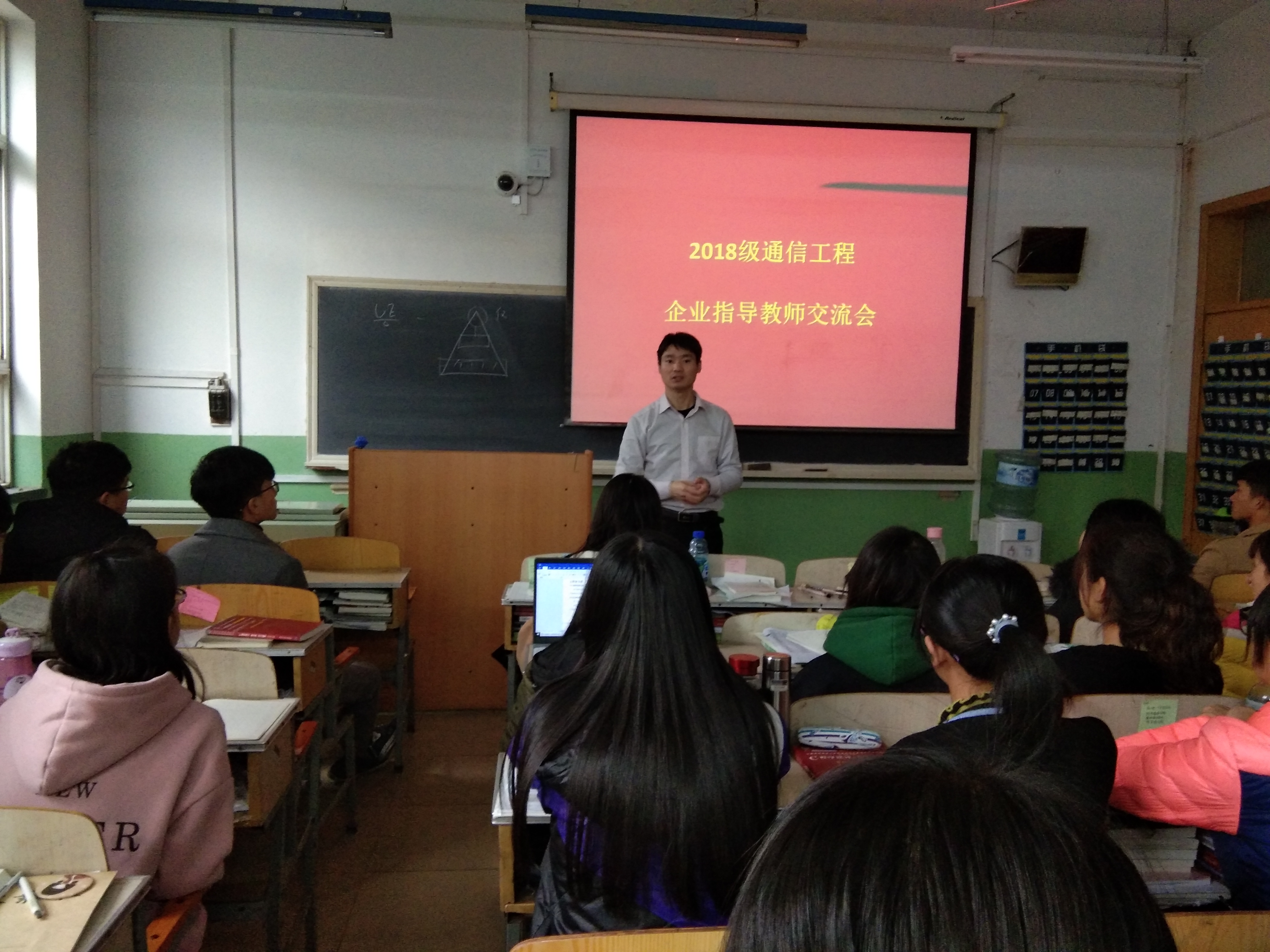 大唐移动通信学院院长王玉江应邀担任2018级通信工程专业的企业指导教师,参与到班级的日常管理工作中。作为企业级的“职业规划辅导员”,11月15日,在第一次师生见面交流会上,王玉江给大家带来了最新的前沿科技和行业发展动态。从量子通信、水下通信、光纤传感器到我国自主研发领跑世界的5G技术;从大唐移动、华为、中兴三大行业巨头,到普天科技、烽火通信等高新企业;从北京邮电大学、南京邮电大学、重庆邮电大学等通信专业的高校排头兵,到西安电子科技大学、西北工业、西安交通大学等与企业有密切研发关系的高等学府,王玉江深入浅出、循循善诱,向同学们展开了一幅波澜壮阔的发展蓝图,让同学们再一次感受到了通信技术的飞速发展带来的极大冲击。