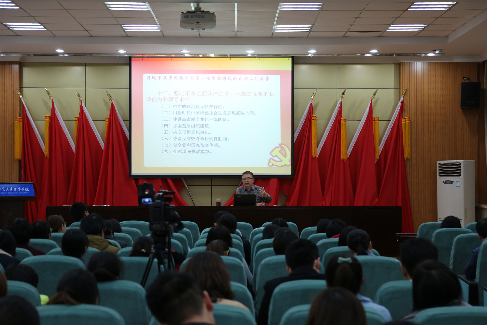 11月15日下午,基层党务干部培训班首场报告“新时代高校基层党组织的任务”在图书馆报告厅举行,报告由学院党委书记徐国强主讲,党委委员、党群工作部部长李振国主持。徐国强介绍了本次培训的主要内容,要求与会人员要端正学习态度,力求学深学透,领会实质,把握要义,切实提高理论水平和党务工作水平。徐国强阐述了党的十九大报告及党章中关于基层党组织建设的要求,解读了全国教育大会的主要精神。他强调,习近平总书记关于教育“九个坚持”的重要论述是对我国教育事业规律性认识的深化,是做好新时代教育工作的根本遵循。广大基层党务干部要紧紧围绕学习贯彻全国教育大会精神,坚持党的教育方针,严格落实德智体美劳全面发展的总要求,努力写好新时代Beat365唯一官方网站在高等教育发展进程中的奋进之笔。