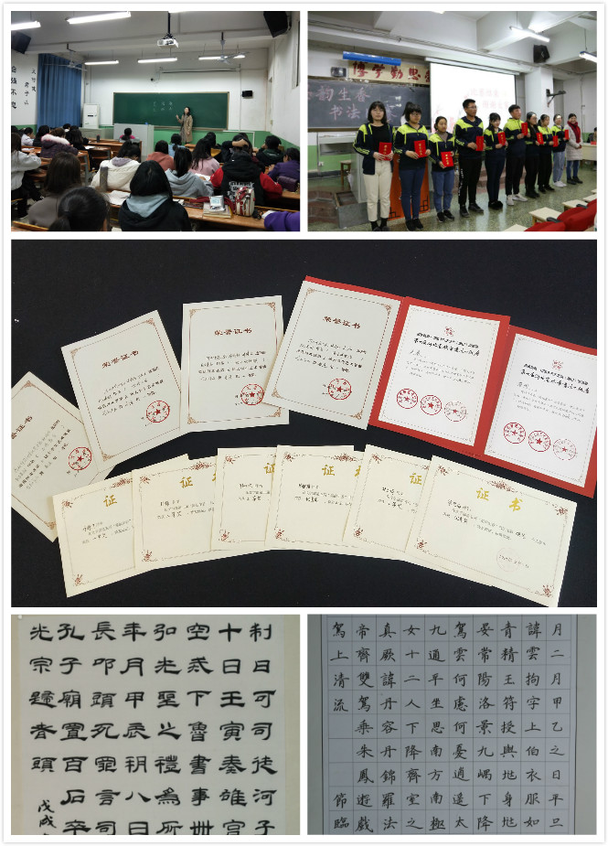 12月7日,文学部在第一教学楼404、405教室举办了第五届“墨韵生香”书法比赛,比赛由文学部书法工作室承办,教务处宗宏宇和文学部王倩茹担任比赛评委。