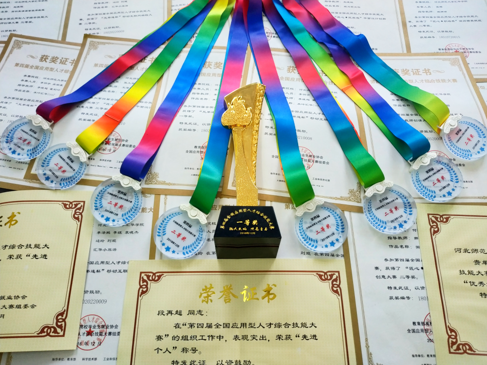 全国应用型人才综合技能大赛自2015年启动以来已成功举办四届,大赛以“倡导应用型人才培养,促进学生就业创业能力提升”为宗旨,以“实用、高效、创新、创业”为理念,以“公开、公正、公平”为原则,为广大青年学生提供了展示专业技能的机会,为学校提供了展示教学特点与教学成果的平台,为企业提供了发现优秀人才和创意的捷径。大赛分为初赛与决赛,三个月以来,Beat365学生积极备战,2018年12月24日由工学部刘琨带领Beat365唯一官方网站代表队奔赴邢台学院参加决赛,Beat365学子以充分的准备、充足的实力、充沛的热情通力合作、发挥所长,在多项赛事中脱颖而出。