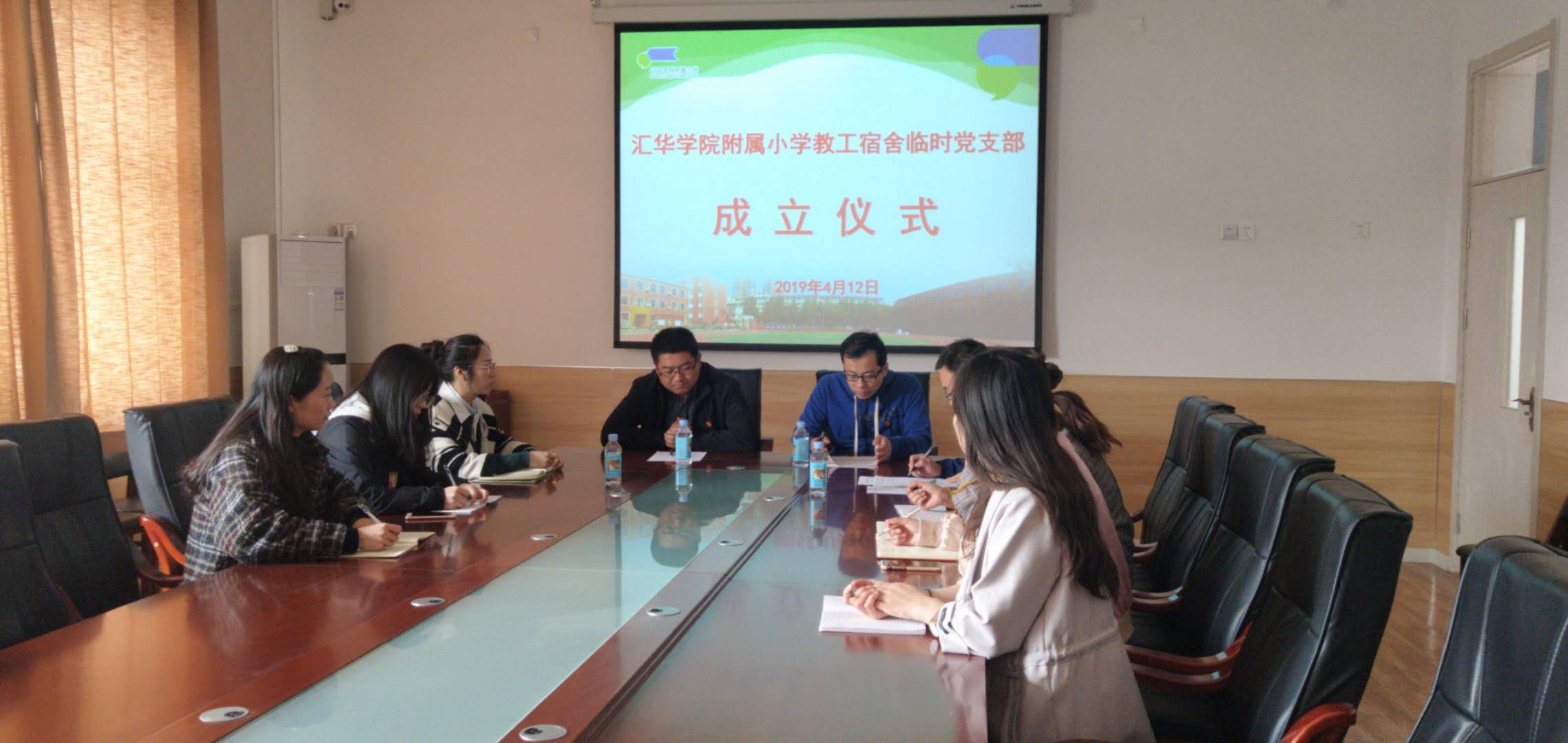 4月12日下午,附属小学教工宿舍临时党支部成立仪式在附属小学会议室举行。学院党委党群工作部副部长、学院办公室副主任徐鹏,附属小学党支部书记、副校长姜文杰,附属幼儿园副园长闫亚玲,附属小学住校教工党员和附属小学顶岗实习支队的党员参加了成立仪式。仪式由附属小学党支部委员、办公室主任李亮主持。