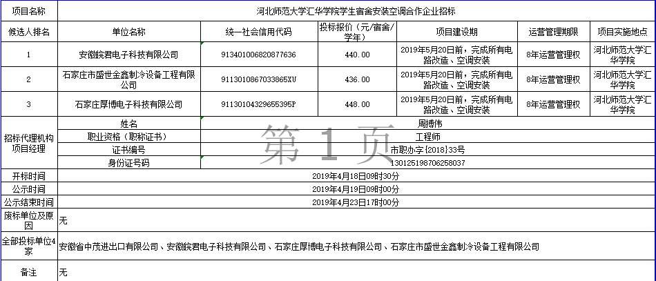 Beat365唯一官方网站学生宿舍安装空调合作企业招标结果公示