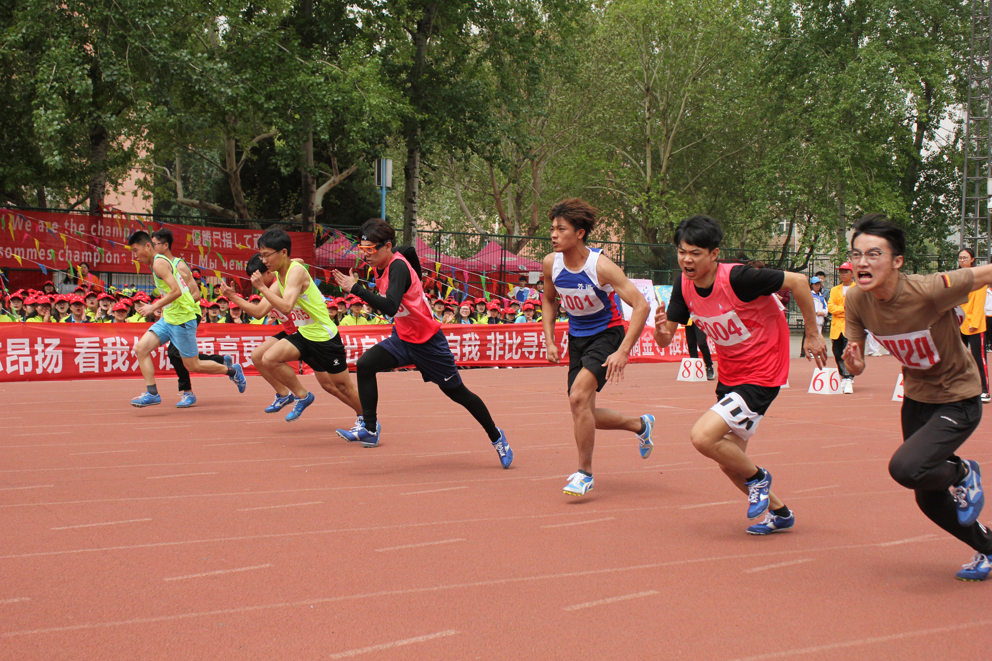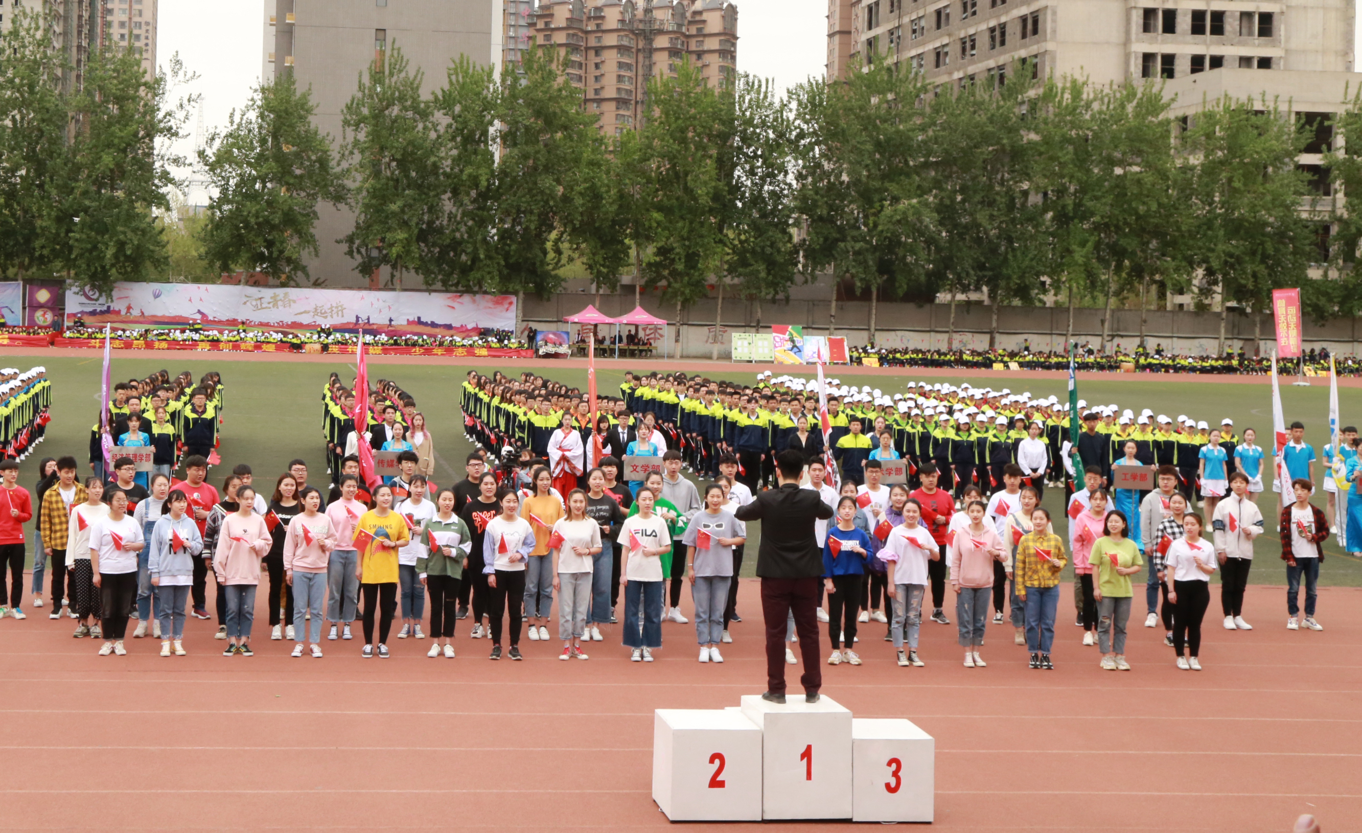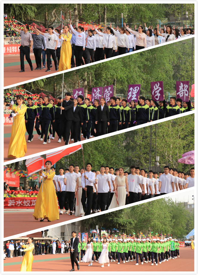 伴随着《运动员进行曲》激昂的乐曲,国旗队、旗林队、花束队、裁判员及各学部学生运动员、学院教工运动员方阵迈着矫健的步伐依次入场。