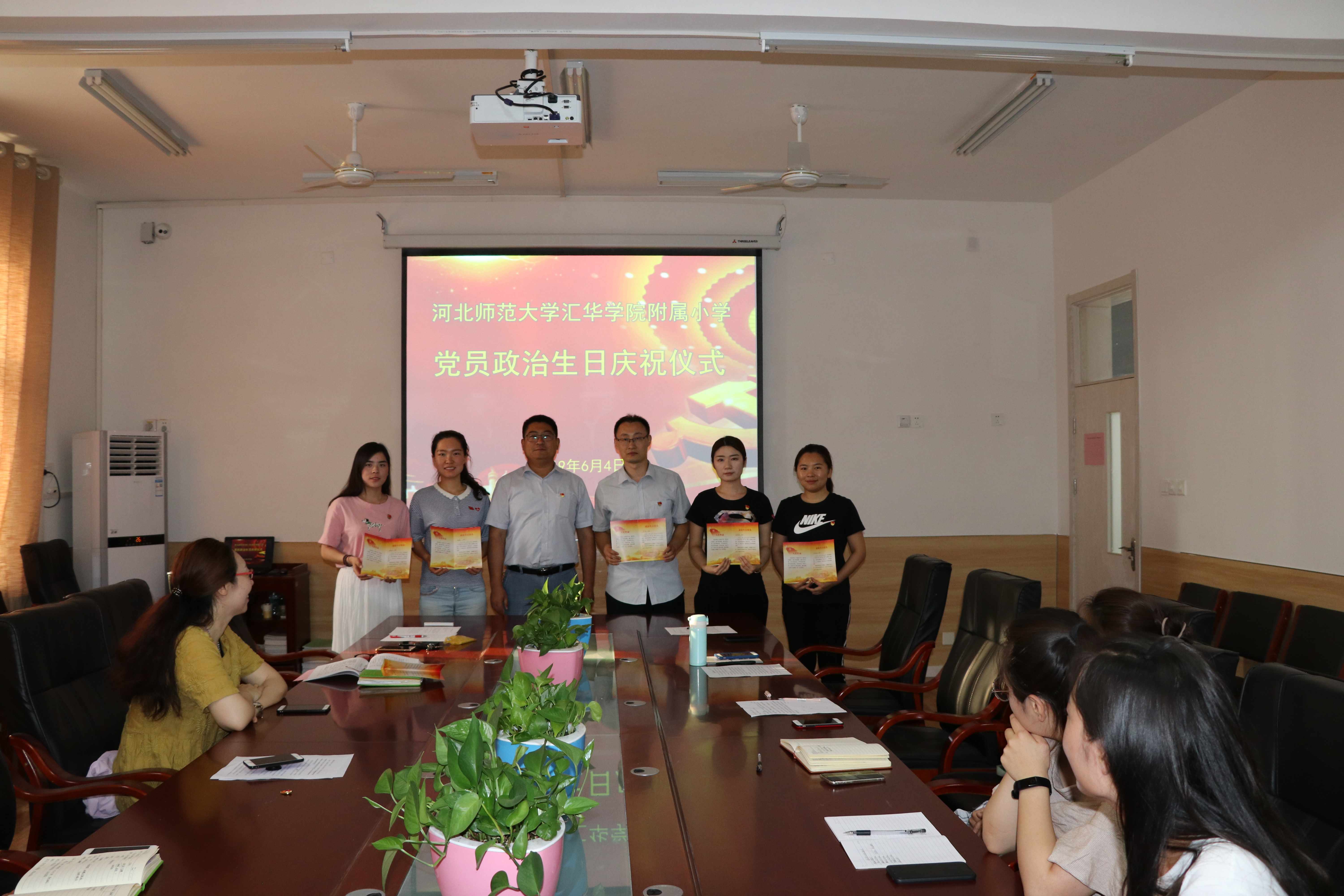 6月4日下午,附属小学党支部在学校会议室召开支部大会,为支部3-6月份入党的5名党员举行了庄严的“政治生日”庆祝仪式。