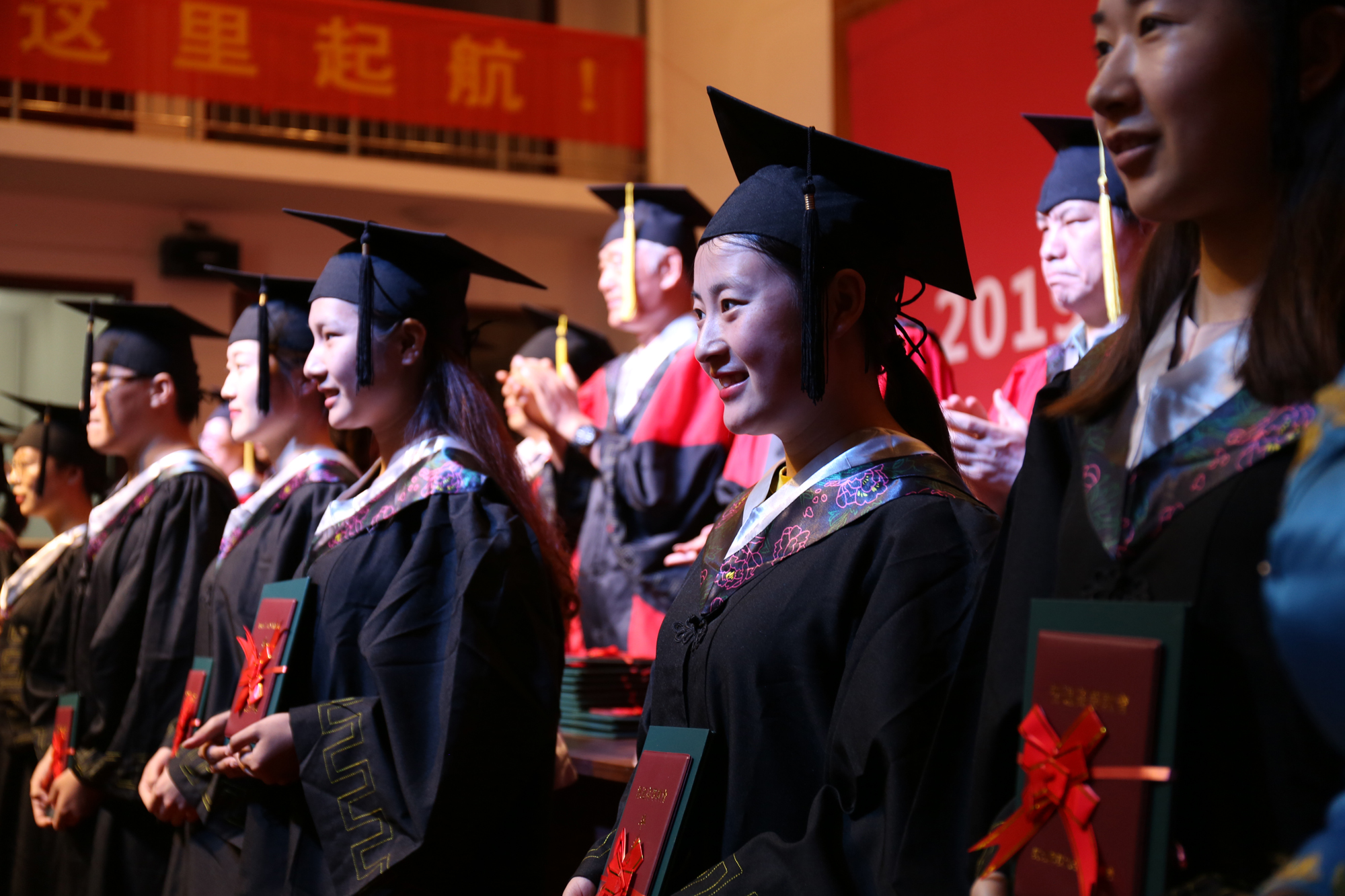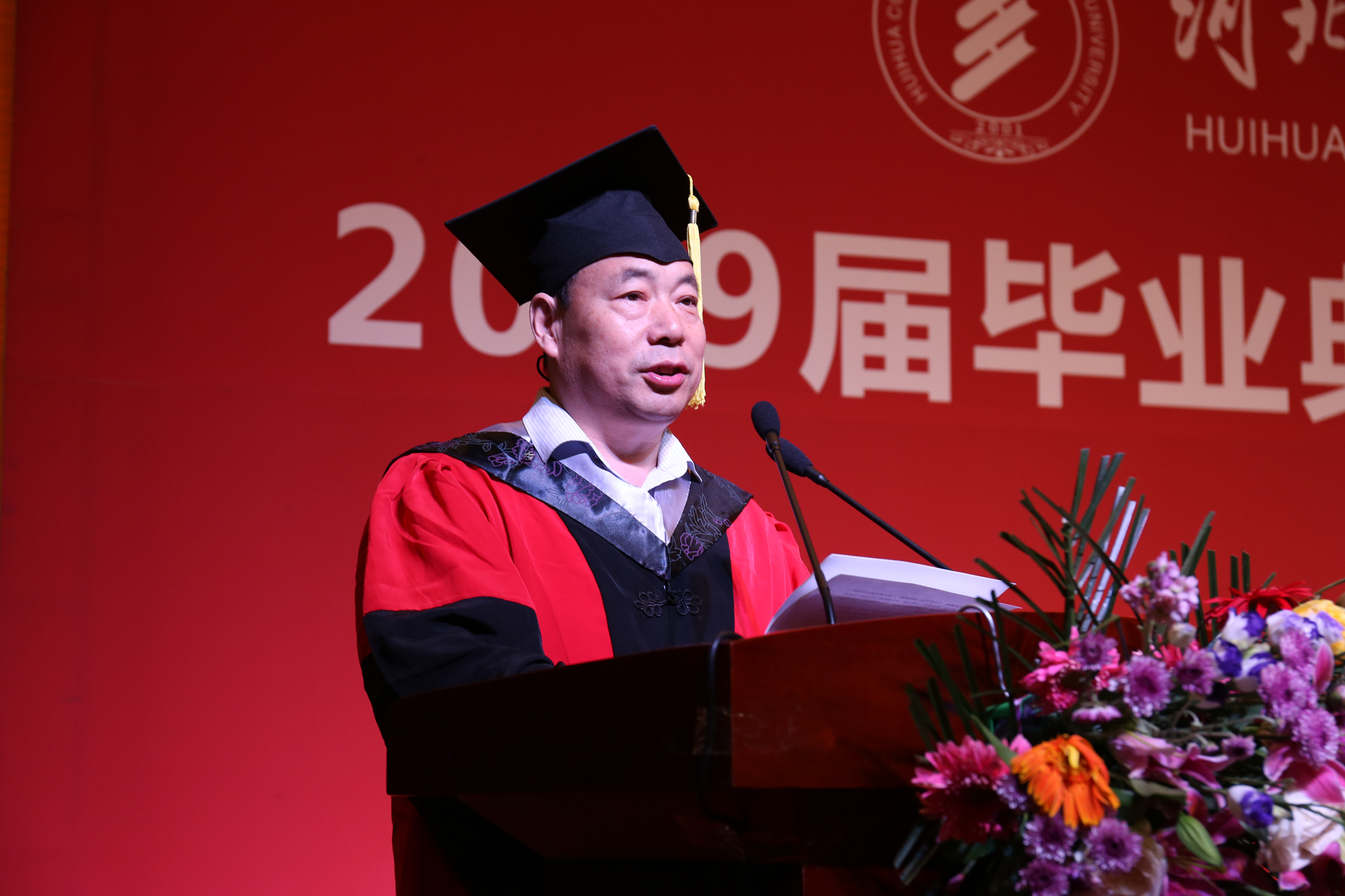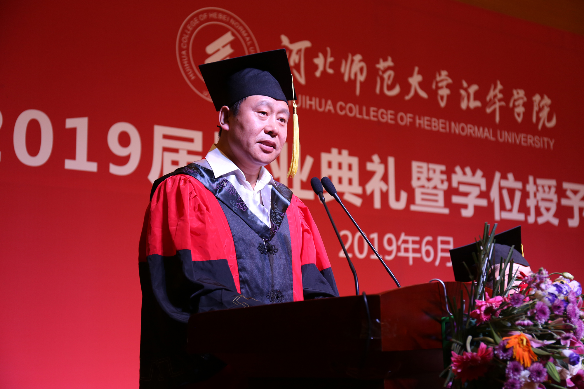 毕业典礼在雄壮的国歌声中拉开序幕。学院领导向圆满完成学业,即将踏上新征程的2019届毕业生致以由衷祝贺和美好祝愿。