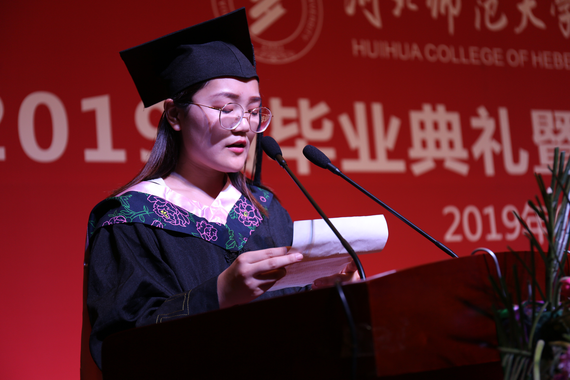 教师代表在毕业典礼上用情深意切的话语表达了对2019届毕业生依依难舍之情和殷切期望。在校生代表也为学长学姐送上了祝福,表示要向他们学习,将超越自我、开创未来的汇华精神传承下去。毕业生代表回忆了四年与母校的点滴,表示今后始终牢记师长嘱托,乘新时代春风,放飞青春梦想。