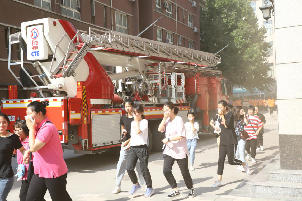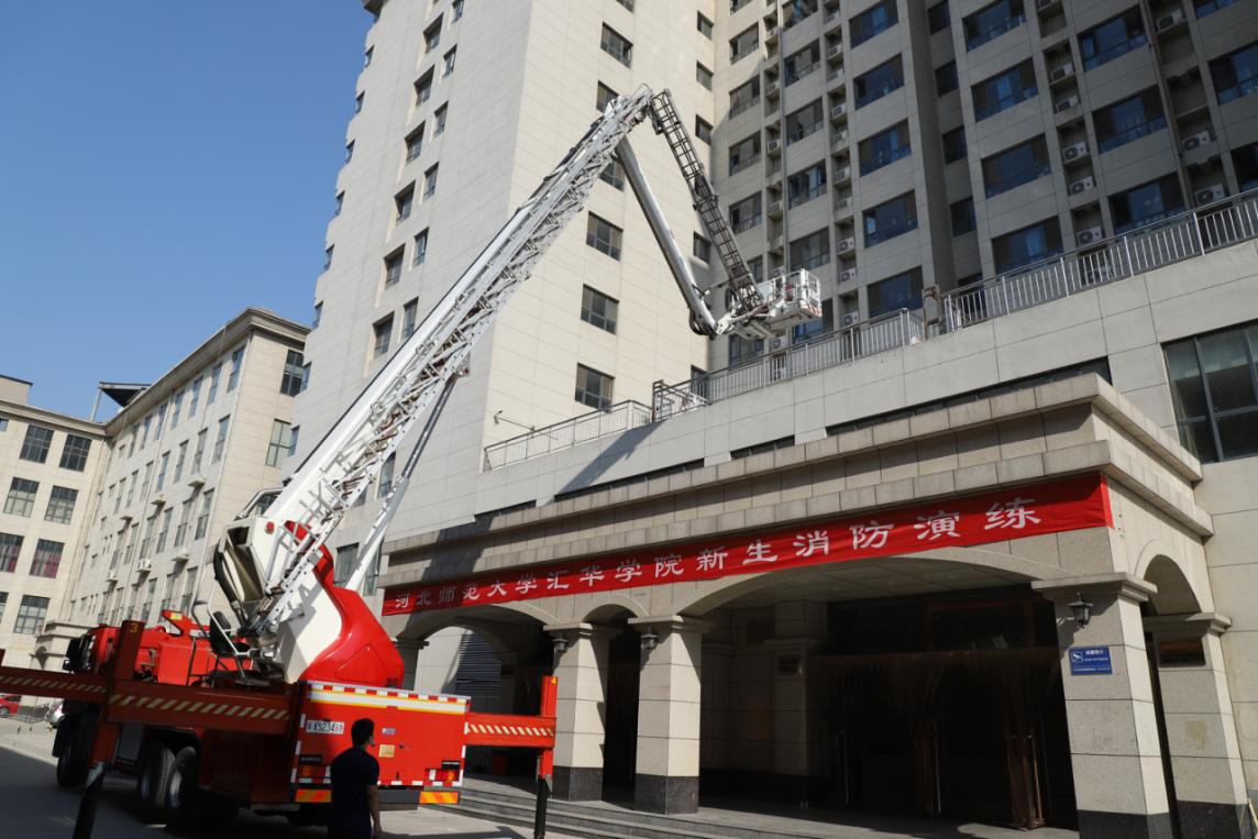 5分钟左右,消防救援中队赶到现场,开始实施救援。平台上受困人员乘坐消防云梯,被顺利疏散到地面安全地带,医护救援组迅速将受伤人员转运救治。救援结束后,经清点人数,全体新生均安全疏散至指定区域,演习取得圆满成功。演习结束后,桥西消防救援大队防火工程师张兵辰对演习进行了点评,讲解了日常消防安全的重要性,教育引导学生要牢固树立消防安全意识,爱护消防设施,积极抵制违反消防规定的不法行为。学院安全工作处处长侯江博做简要总结发言。