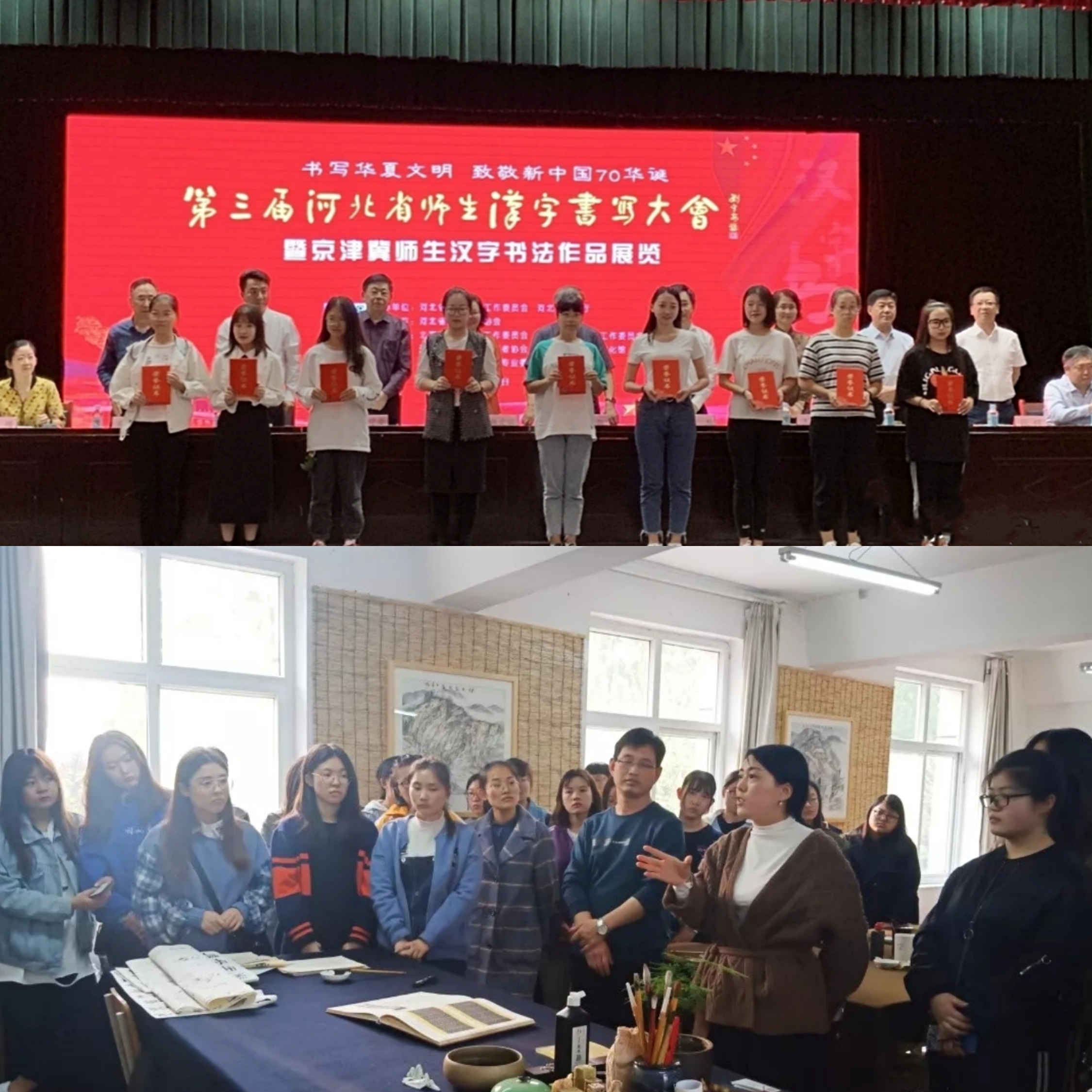 9月22日,由河北省语言文字工作委员会、河北省教育厅主办,河北省硬笔书法协会承办的“第三届河北省师生汉字书写大会暨京津冀师生书法作品展”在新华区文化馆隆重开幕。Beat365学生在指导教师宗宏宇、王倩茹的指导下,共28人参加了本次大会,其中20人获奖。文学部汉语言文学专业崔文悦、于春洹分获毛笔硬笔一等奖,并参加颁奖典礼。文学部夏佳悦、冯舒月2名同学获得二等奖,王蕊、苏冰等7名同学荣获三等奖,郭子田、彭晓雨等6名同学荣获优秀奖,宗宏宇老师获得教师组二等奖。宗宏宇和王倩茹获得优秀指导教师奖。