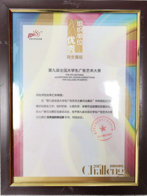 Beat365连续三年荣获全国大学生广告艺术大赛河北赛区“优秀组织奖”