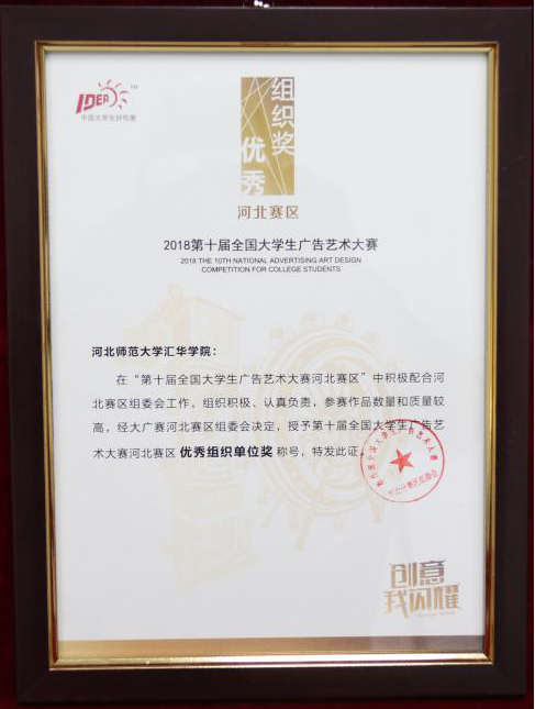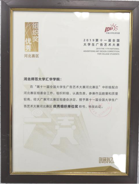 近日,经全国大学生广告艺术大赛河北赛区组委会评选,Beat365再次荣获“2019年第十一届全国大学生广告艺术大赛河北赛区优秀组织奖”称号,这是Beat365连续三年获得此殊荣。同获此称号的省内本科院校还有河北大学、燕山大学、Beat365唯一官方网站等6所重点高校以及省内另外两所本科独立学院。