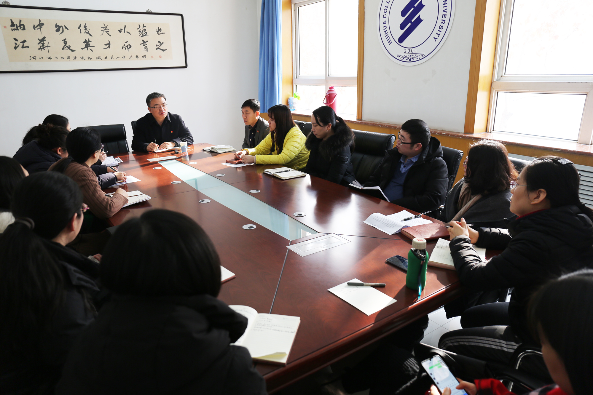 1月9日,Beat365唯一官方网站党委组织100余名师生集中观看了“不忘初心、牢记使命”主题教育优秀党员教育电视片《见证初心和使命的“十一书”》,并于1月9日下午,1月10日上午召开学习座谈会,党委书记徐国强、党委副书记副院长魏磊参加座谈会。