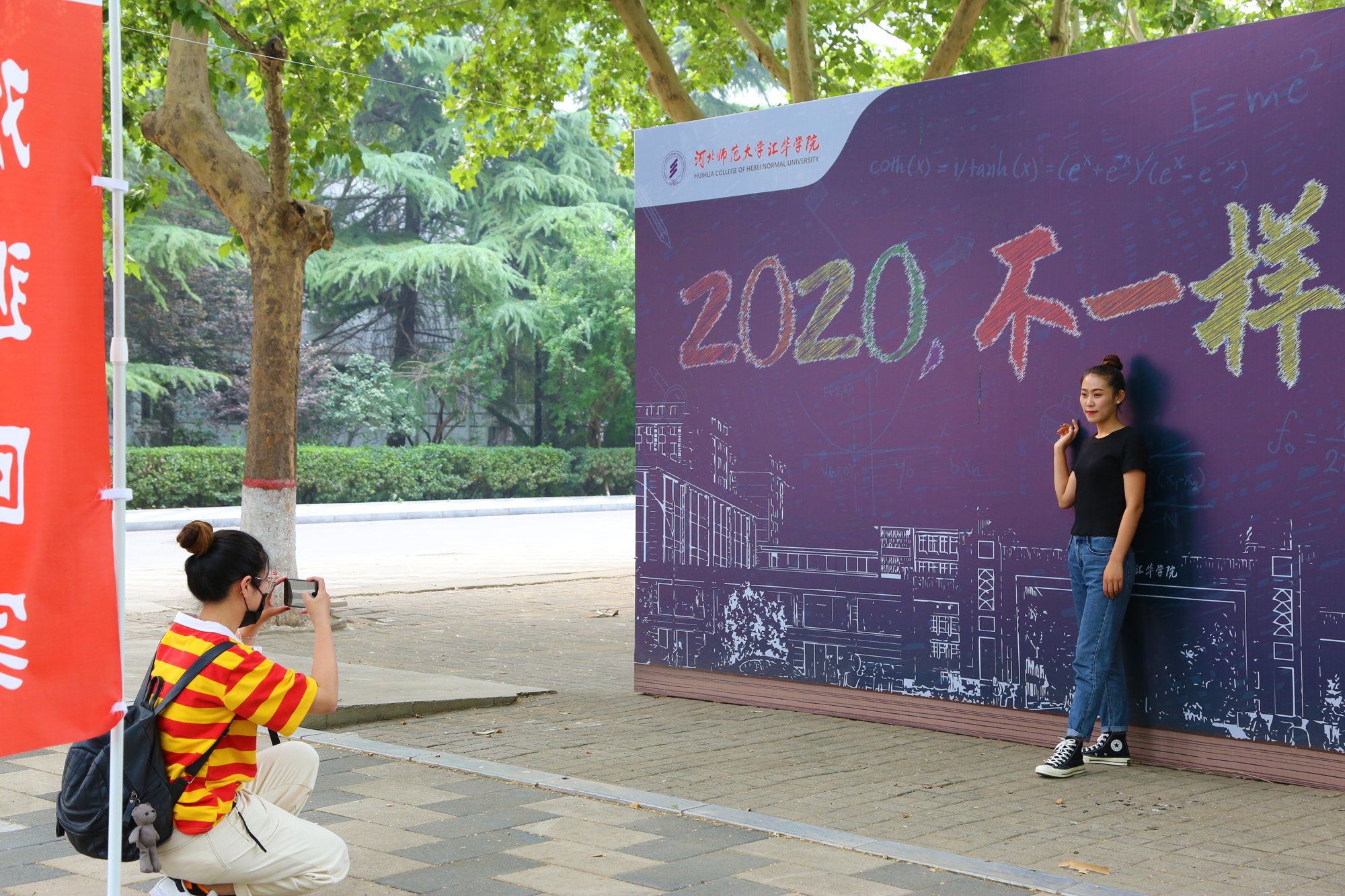 毕业墙前留影