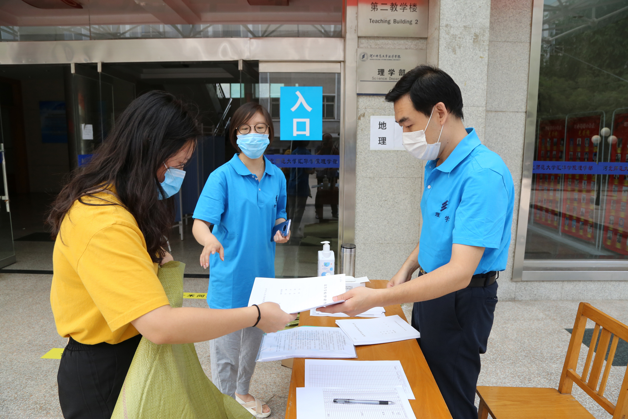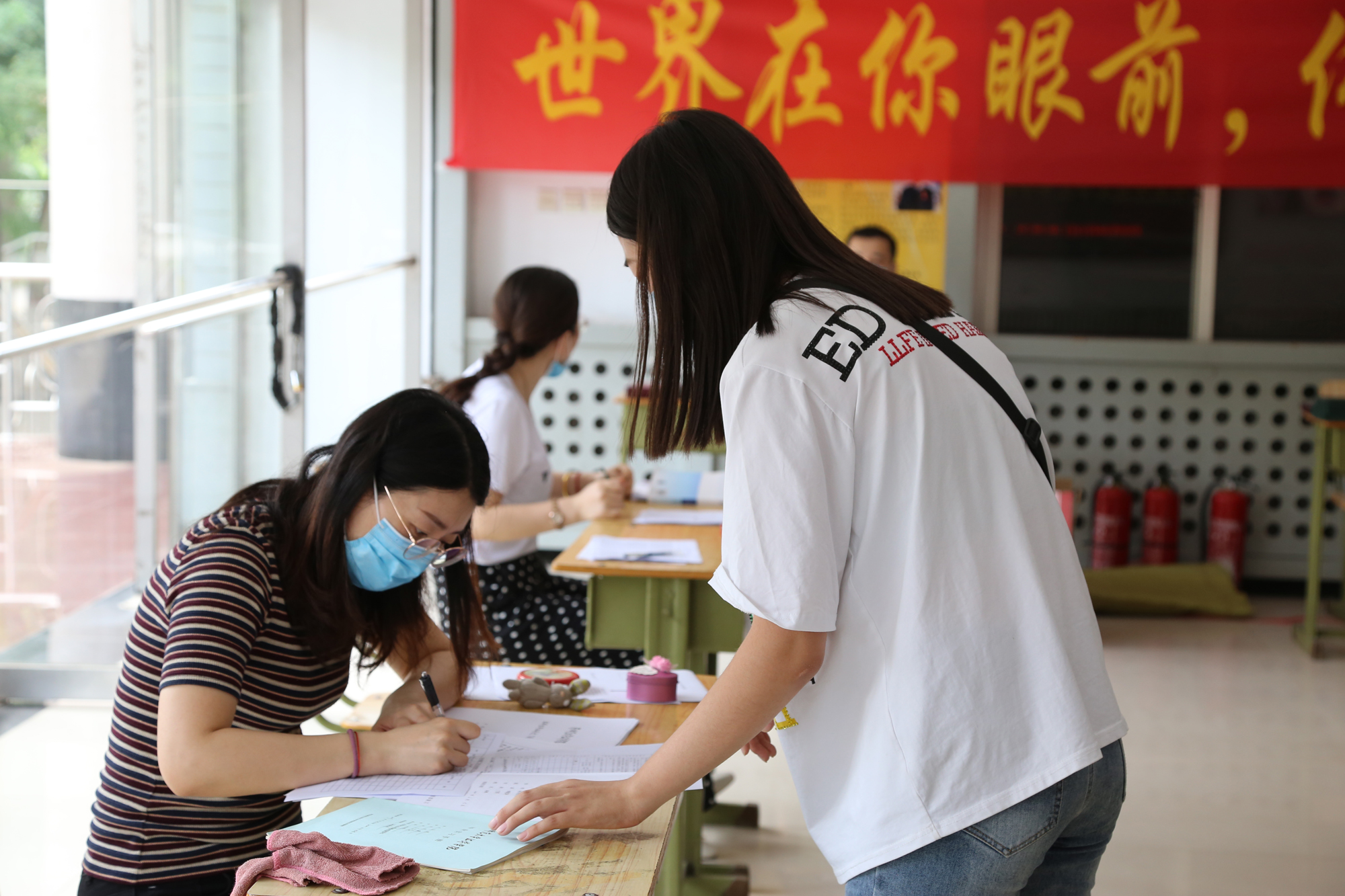 老师们仔细的办理学生的手续
