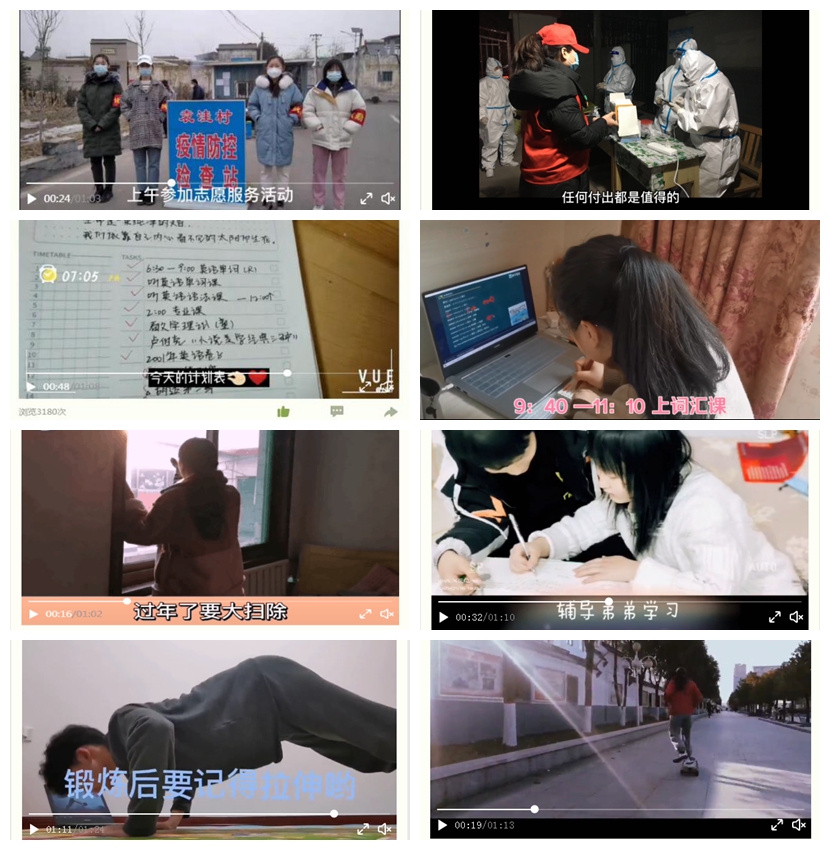 “我们的假期”微视频内容积极向上,主题丰富多彩。微视频宣传疫情防护知识,引导大学生积极参与当地疫情防控;制定假期目标和行动规划,利用假期查漏补缺,充分利用好难得的“充电期”;发展个人兴趣爱好,学习新的生活技能和才艺,全面发展,陶冶情操;积极主动承担家务,陪伴家人,营造和谐家庭氛围和良好心理健康环境;利用传统节日,弘扬传承中华优秀传统文化。