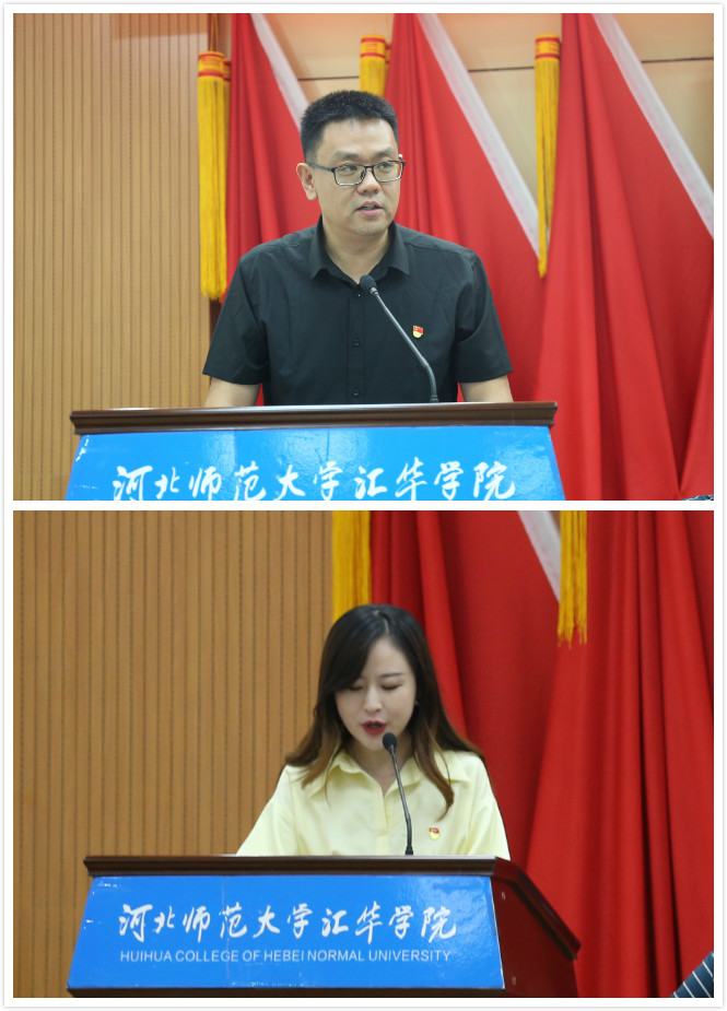 直属教工第一党支部书记侯江博、传媒学部第二学生党支部书记高天宇作为先进基层党组织代表,外语学部教师党员李敏作为优秀共产党员代表作了发言。