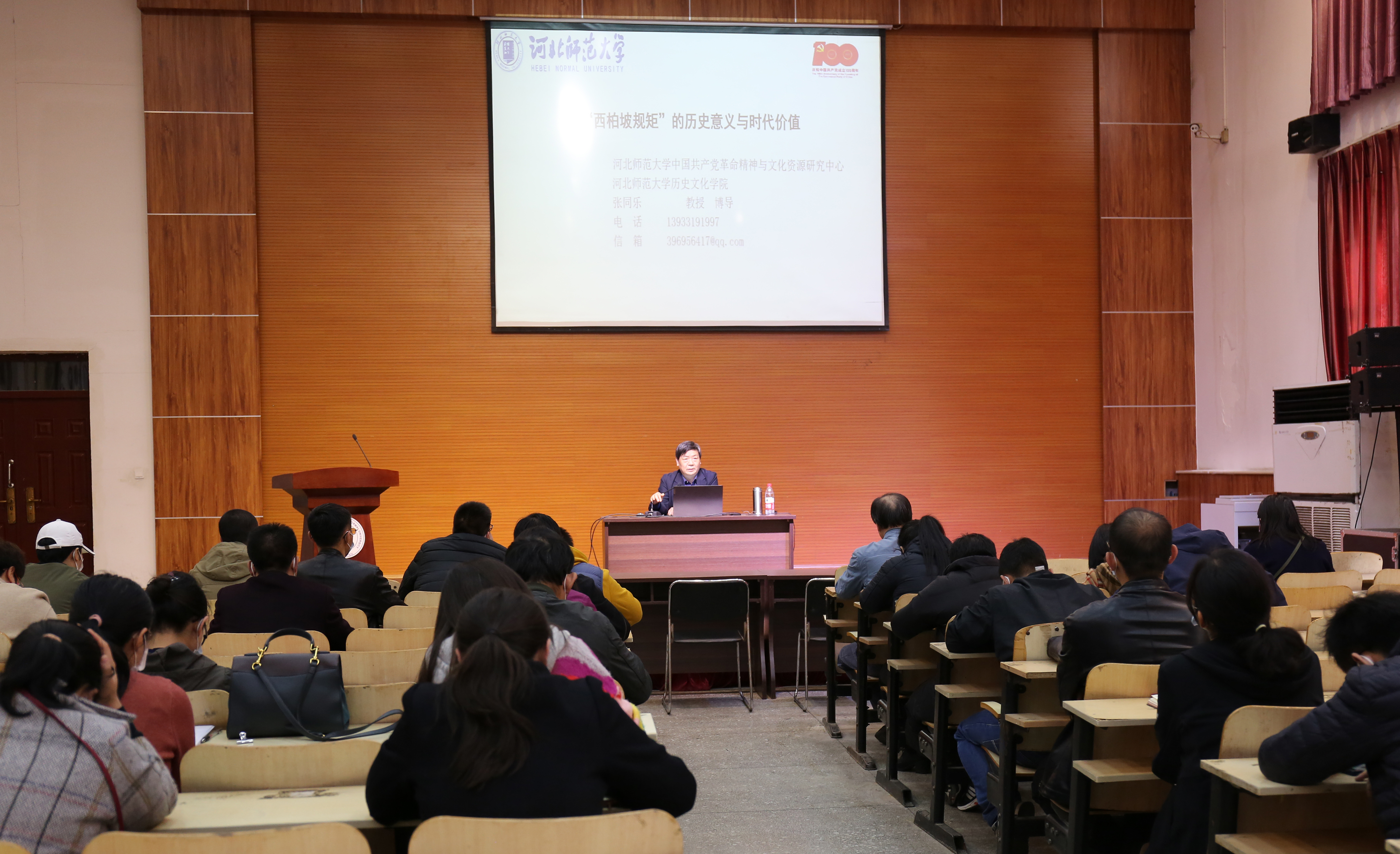 张同乐以《“西柏坡规矩”的历史意义与时代价值》为题,从西柏坡时期立规矩的历史土壤、西柏坡时期党的规矩纪律建设、“西柏坡规矩” 的历史意义与时代价值三个方面进行了解读。张同乐指出, 西柏坡时期,中国共产党为实现由乡村到城市、由革命到建设的历史性转折,制定了许多党规、军纪、政府政策法规,称为“西柏坡规矩”。毛泽东和中共中央高度重视“制度治党”,并坚决维护制度的严肃性和权威性。“西柏坡规矩”为中国共产党保持“两个务必”,经受执政全国的历史考验提供了保证,为新时期治国理政提供了历史借鉴。历史表明,西柏坡时期守纪律、讲规矩是中国共产党从胜利走向胜利的重要保证;是克敌制胜的法宝;是制度治党、依法治国实现民族复兴中国梦的重要保障。