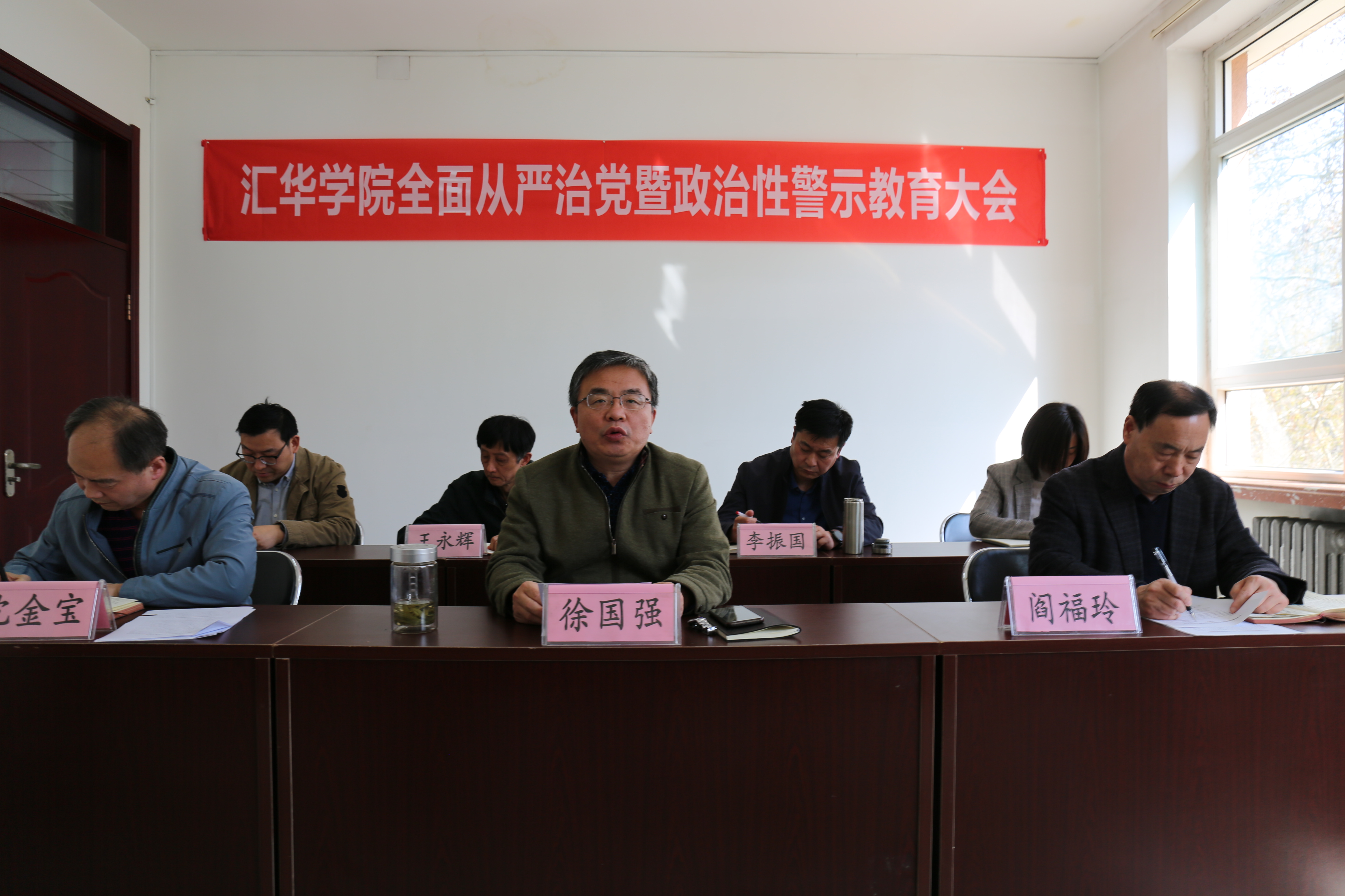 3月31日下午,Beat365召开全面从严治党暨政治性警示教育大会,深入学习贯彻习近平总书记重要讲话和党的十九届六中全会精神,全面落实十九届中央纪委六次全会、2022年教育系统全面从严治党工作会、全省党建工作暨政治性警示教育大会精神,安排部署学院2022年纪检监察工作,开展政治性警示教育。党委书记徐国强讲话,党委副书记、院长阎福玲主持会议,党委纪检委员、副院长沈金宝布置2022年学院纪检监察工作并通报违纪违法典型案件。在校内的学院领导班子成员在主会场出席会议,全体教职工党员以视频方式参加会议。