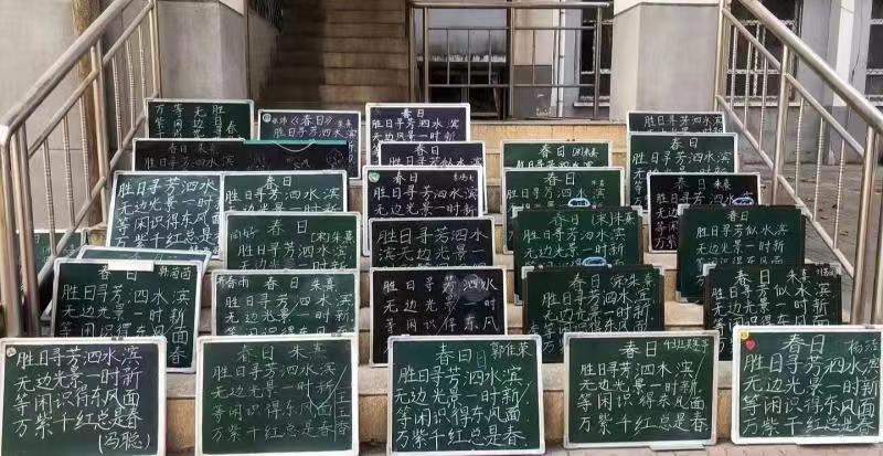 在前期多方调研,并与各相关学部沟通制定培训方案的基础上,板书强化培训活动由教务处“三笔字”教学中心具体负责实施。遵循“教会、勤练、常展”的基本原则,三笔字中心精心设计培训计划、合理制定考核方案、严格遴选授课“小先生”、认真组织课堂教学和巡回督导,重点通过抓好示范、指导、练习、展示、考核、评优等环节,推动板书强化培训顺利开展。截至目前,三笔字中心的“小先生”们已面向各专业开展培训40余场次,通过每日展示活动展出小黑板4000余板次。教学楼前、花坛边、甬路旁的一排排小黑板不时引来师生的驻足观看,为春日校园增添了一抹别样的风采。