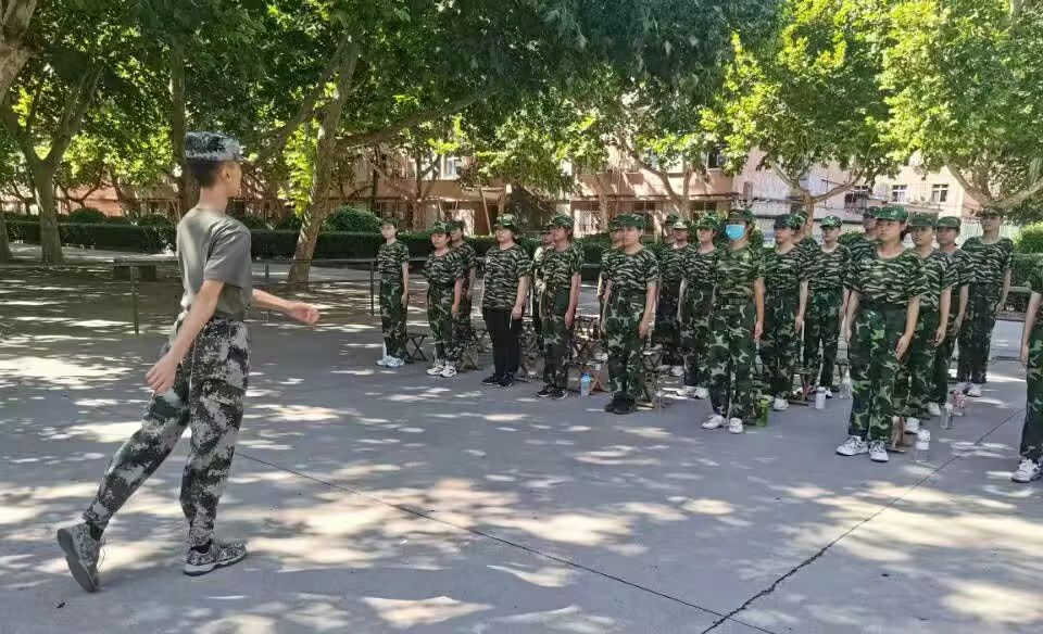 队列训练中,队伍的气氛十分严肃,组织训练的老队员们戴着白色手套,为参训队员纠正动作,同时不断强调动作要领。“一令一动!注意动作要领‘上端下砍’!”为了提高训练效率,达到事半功倍的效果,队员们想出了各种各样的训练办法。站军姿,他们会站在台阶上,脚掌着地,保持脚后三分之一悬空,以使重心自然前倾;踢正步,大家围成一个圈,选一位“教官”站在圈中央,观察和指导动作规范。
