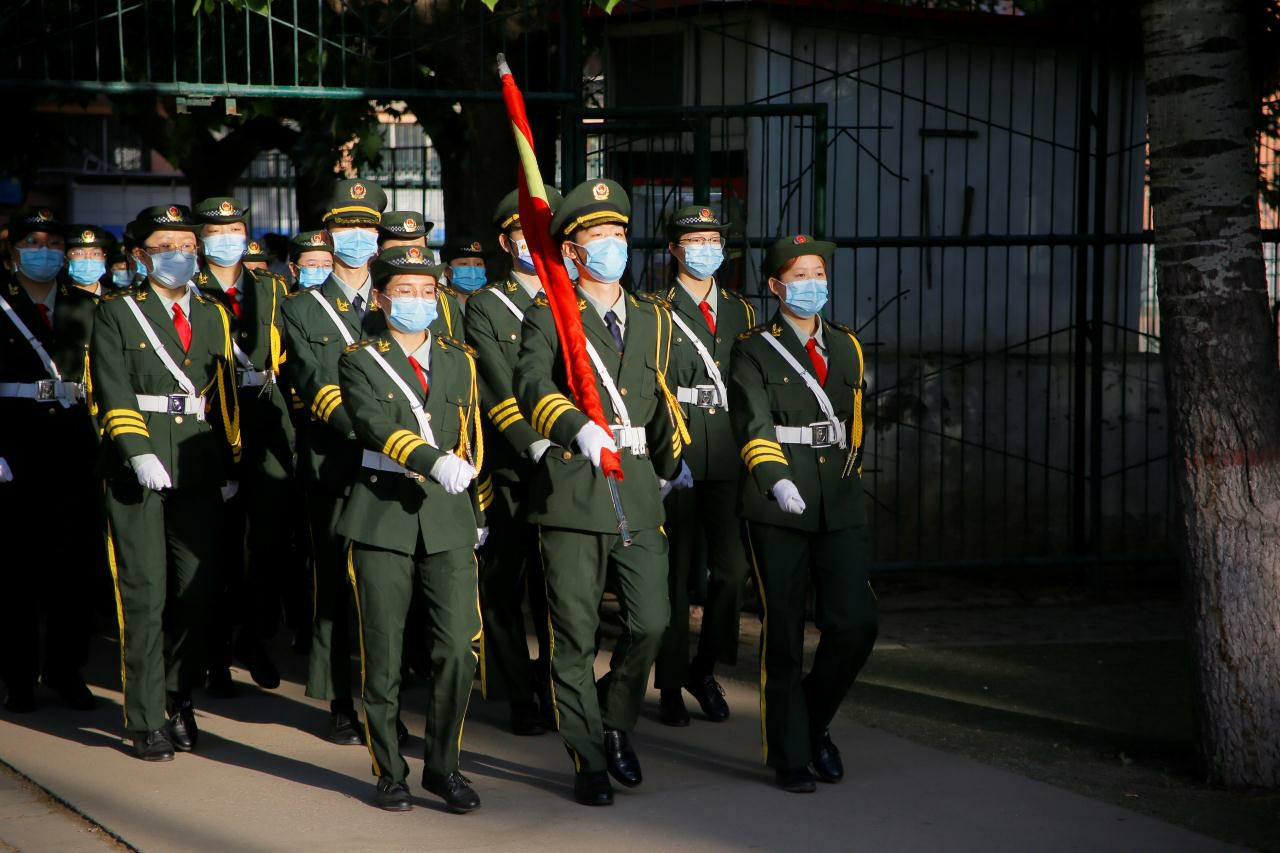 提到国旗队,人们脑海中浮现的往往是笔挺帅气的礼服和令人羡慕的挺拔身姿,或是几十个人整齐划一的转体行进,但也许难以想象这种“军事美学”的背后,是日复一日的站军姿、踢正步、展国旗,是成百上千个口令的不断磨合,是披星戴月的辛勤付出。
