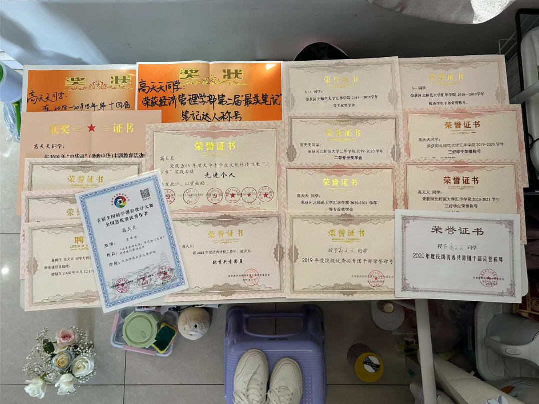 高天天获得的荣誉证书