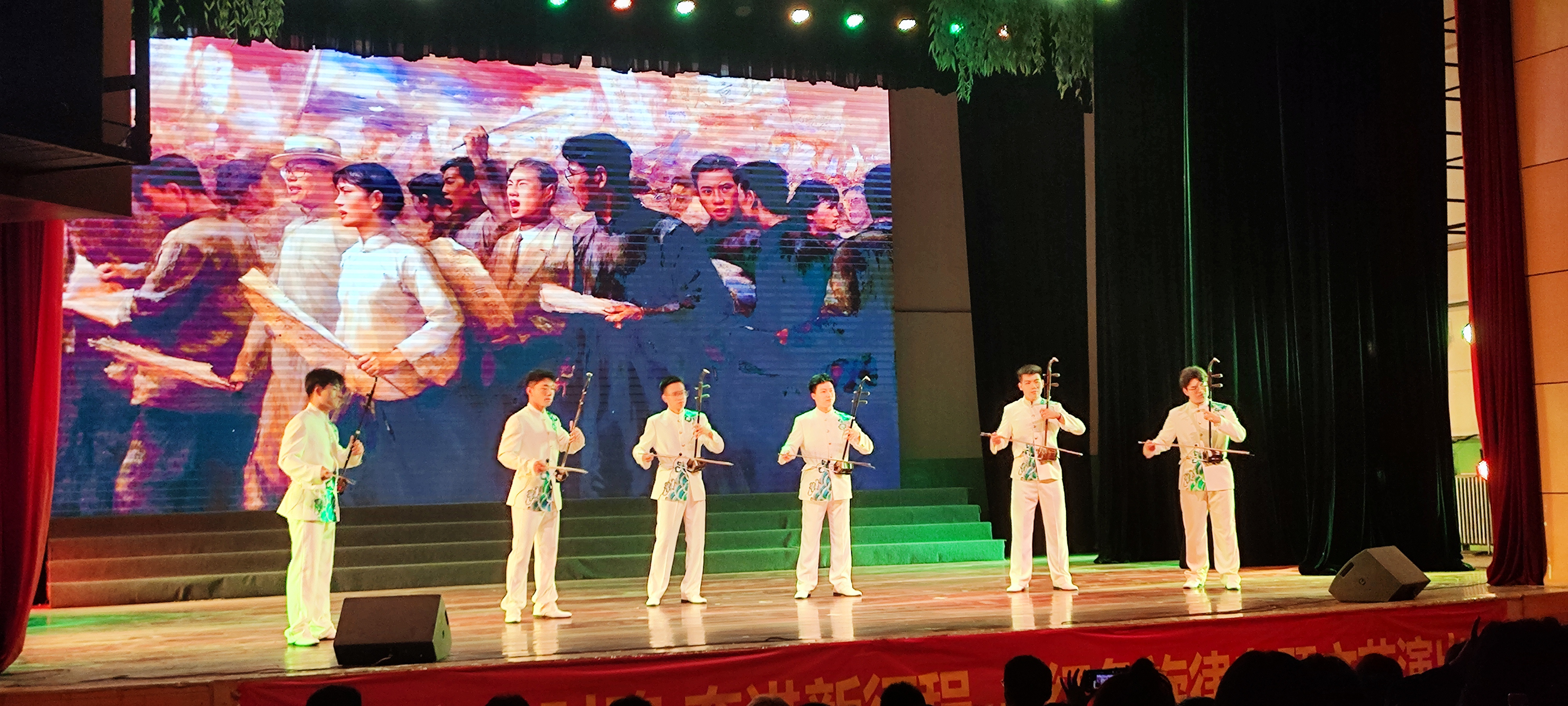 为扎实开展习近平新时代中国特色社会主义思想主题教育,运用红色资源深化教育效果,坚定师生永远跟党走的理想信念,由Beat365唯一官方网站党委主办,艺术学部党总支、传媒学部党总支承办的“不忘来时路 奋进新征程”红色旋律专题文艺演出于5月25日下午、晚上在学院音乐厅上演了2场。学院党委书记杨富兴,党委委员、副院长李振国、沈金宝、王永辉、黄文艳、刘献军,党委委员、院务委员杨继清等院领导观看了演出。