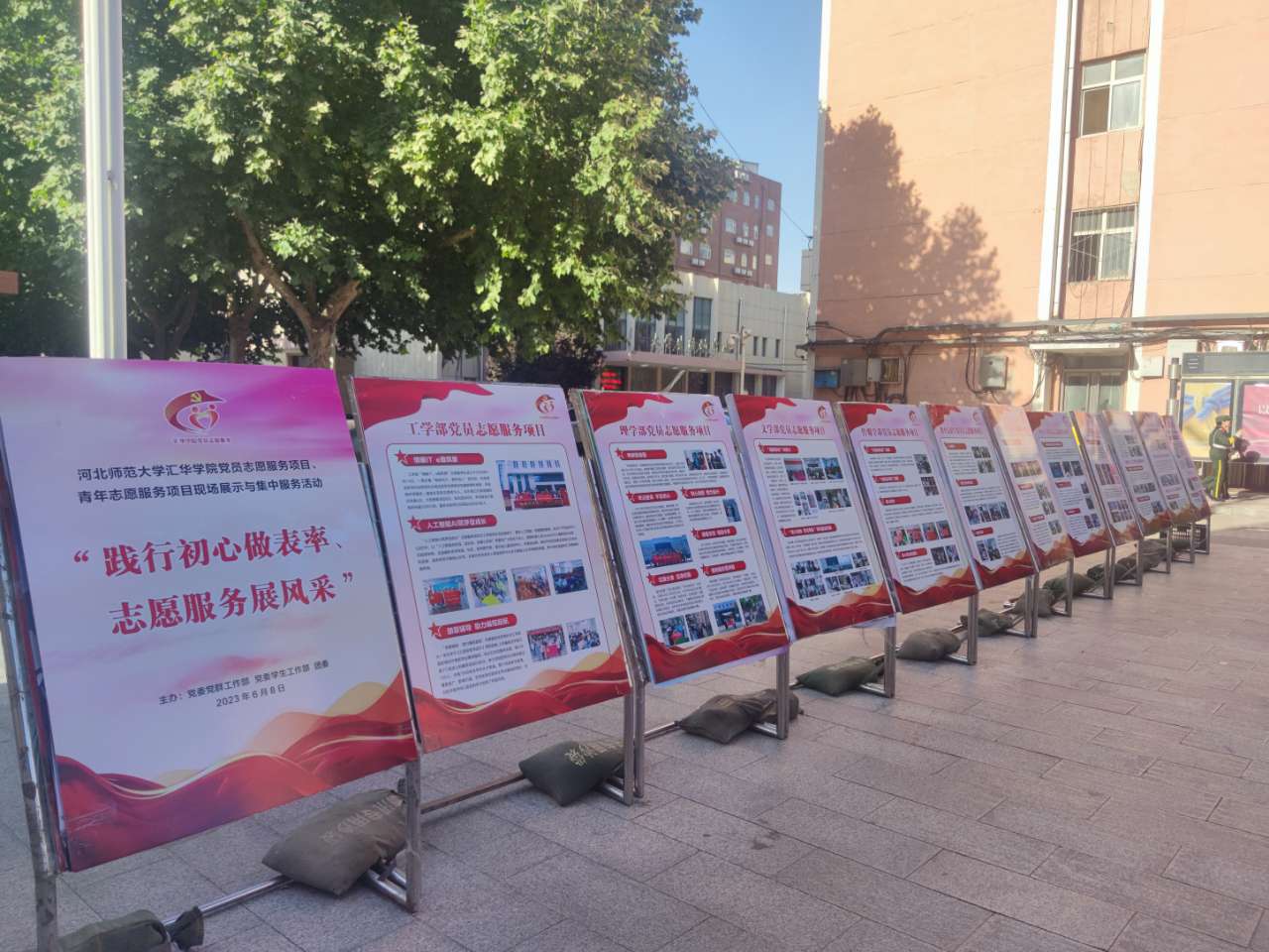 在深入开展学习贯彻习近平新时代中国特色社会主义思想主题教育之际,Beat365唯一官方网站党委认真贯彻落实习近平总书记关于志愿服务工作系列重要指示精神,6月8日下午,在餐饮中心东广场组织开展了“践行初心做表率 志愿服务展风采”党员志愿服务项目、青年志愿服务项目现场展示与集中服务活动,作为落实“学思想、强党性、重实践、建新功”总要求的有力举措,教育引导广大师生广泛开展志愿服务活动,践行人民至上理念,普及专业知识技能,传递党的关怀和温暖,推动主题教育走深走实。院长徐国强、党委书记杨富兴等学院领导班子成员亲临现场观摩,并提出了指导意见。近千余名师生到场观摩并体验了现场服务。