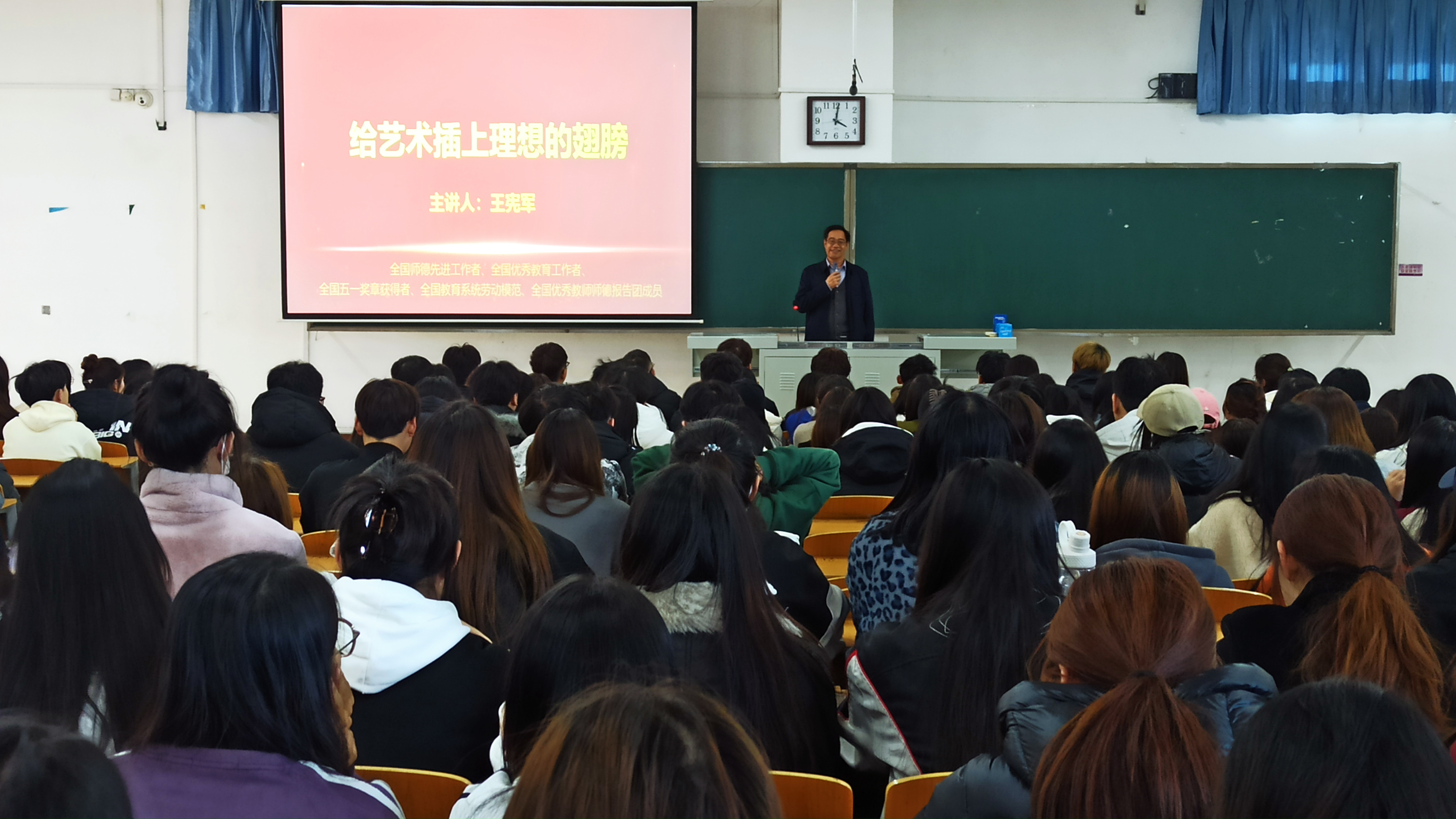 11月9日下午,学院邀请中学正高级教师、石家庄六中原党总支书记兼校长王宪军老师在第五教学楼305教室作报告“给艺术插上理想的翅膀”。此次报告会是“汇华名家讲堂”系列活动之一,艺术学部部分学生到场聆听王老师的报告。