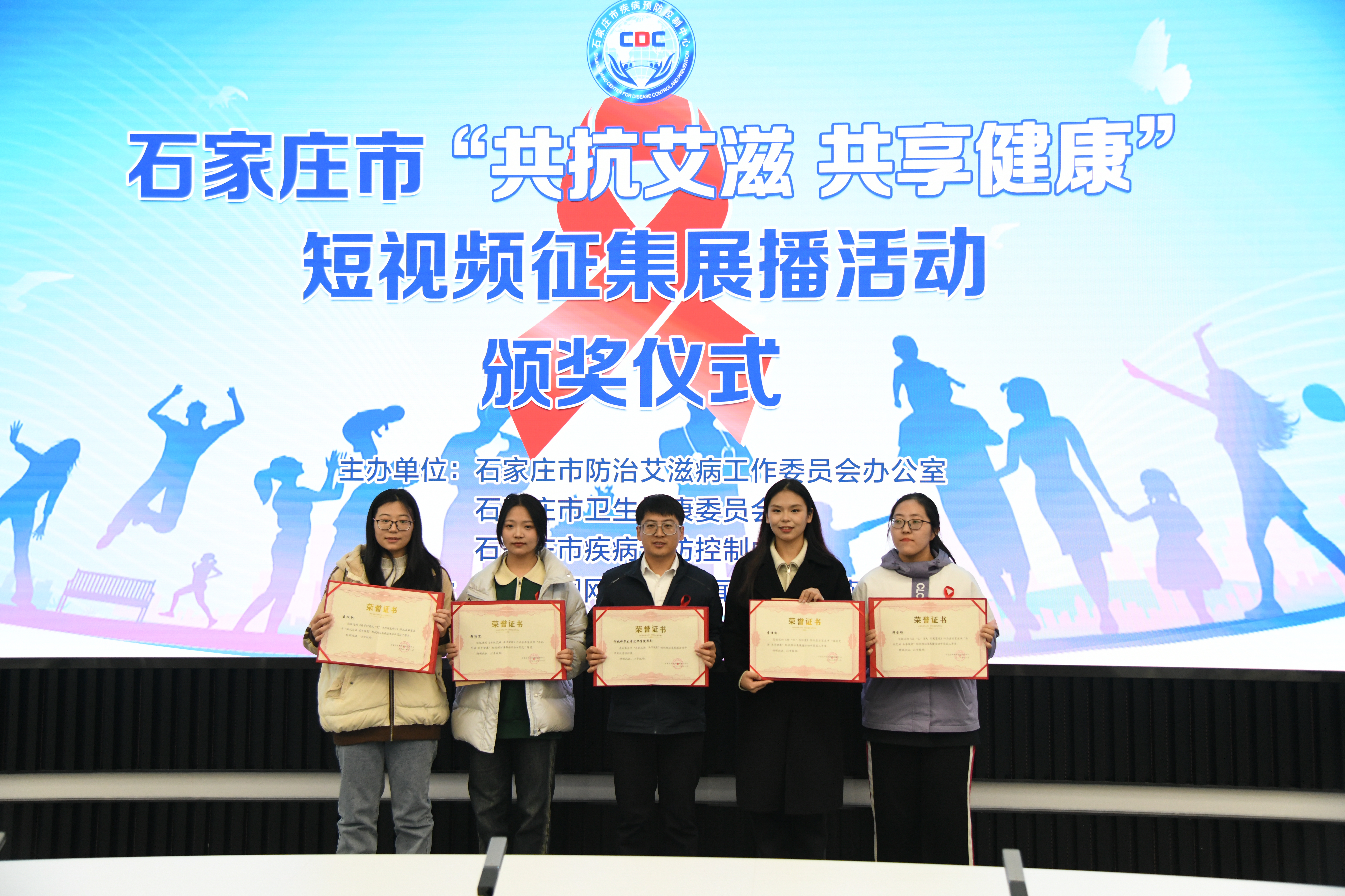 为了增加大学生对艾滋病的了解,增强预防艾滋病的意识,石家庄市疾病预防控制中心组织开展“共抗艾滋 共享健康”系列主题短视频征集展播活动,Beat365团委积极组织学生参与。经过前期活动宣传,中期作品汇总整理,后期评审筛选,Beat365共计上报优秀作品19件,其中4件作品获奖。播音主持专业学生彭博雯获得二等奖,播音主持专业学生李仕向、广告学专业学生韩若彤、数学与应用数学专业学生聂欣欣获得三等奖。组织单位为获奖学生颁发荣誉证书以及奖金。