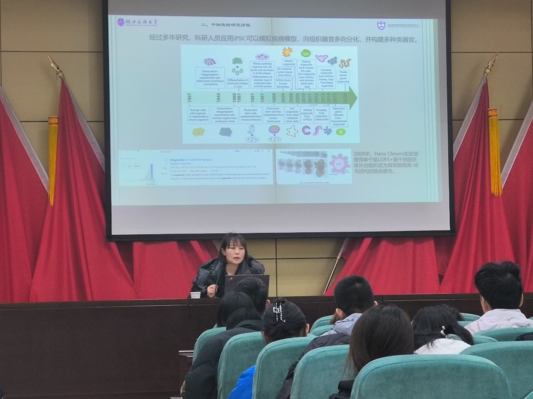 报告会上,马隽教授结合自己的研究重点介绍了干细胞再生医学的基本情况、干细胞的发展沿革、关于干细胞的政策监管以及干细胞医学未来的前沿展望等几个方面。特别指出干细胞再生医学是近年来生命医学研究的热门交叉学科,具有重大的临床应用价值;干细胞再生旨在通过干细胞移植、分化与组织再生,促进机体创伤修复、治理疾病;干细胞再生被称为继药物和手术之后的第三大治疗技术,为解决医学难题提供了潜在可能和新希望。此次报告会开拓了学生视野,加深了学生的专业认知,为学生开展创新研究奠定坚实基础。