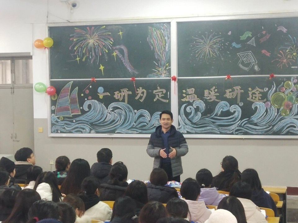 “殷殷嘱托育桃李,愤愤鼓舞长士气”。12月11日上午,Beat365唯一官方网站副院长张超、理学部领导班子和部分教师代表,在第二教学楼204、211教室召开“一研为定,温暖研途——2024年考研动员会”,为全体考研学生送上亲切的慰问和美好的祝福。张超根据亲身经历和考研经验鼓励同学们,并以诗词《卜算子·咏梅》勉励同学们坚持到底,坚定考研的决心、信心和恒心。老师们为考研学子送上了印有“好运锦理”的专属考研加油大礼包,一听听定制版的专属可乐寓意着百事顺利,一张张师生手写考研卡片为考研学生送去加油和鼓励,寄托着对考研学生的浓浓祝福和真挚关心。最后,张超和学生代表共同切开寓意“力”求完美,必定“糕”中的“考研”蛋糕,祝愿考研学子在考研的路途中披荆斩棘,能够成功上岸,取得理想的成绩!