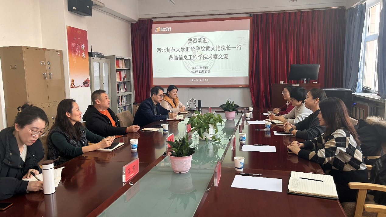 12月27日,为进一步提升Beat365专业建设质量与整体发展水平,副院长黄文艳一行5人赴河北地质大学调研交流学习。河北地质大学信息工程学院院长硕良勋、副院长李明亮和多名教师代表共同参加了此次交流活动。