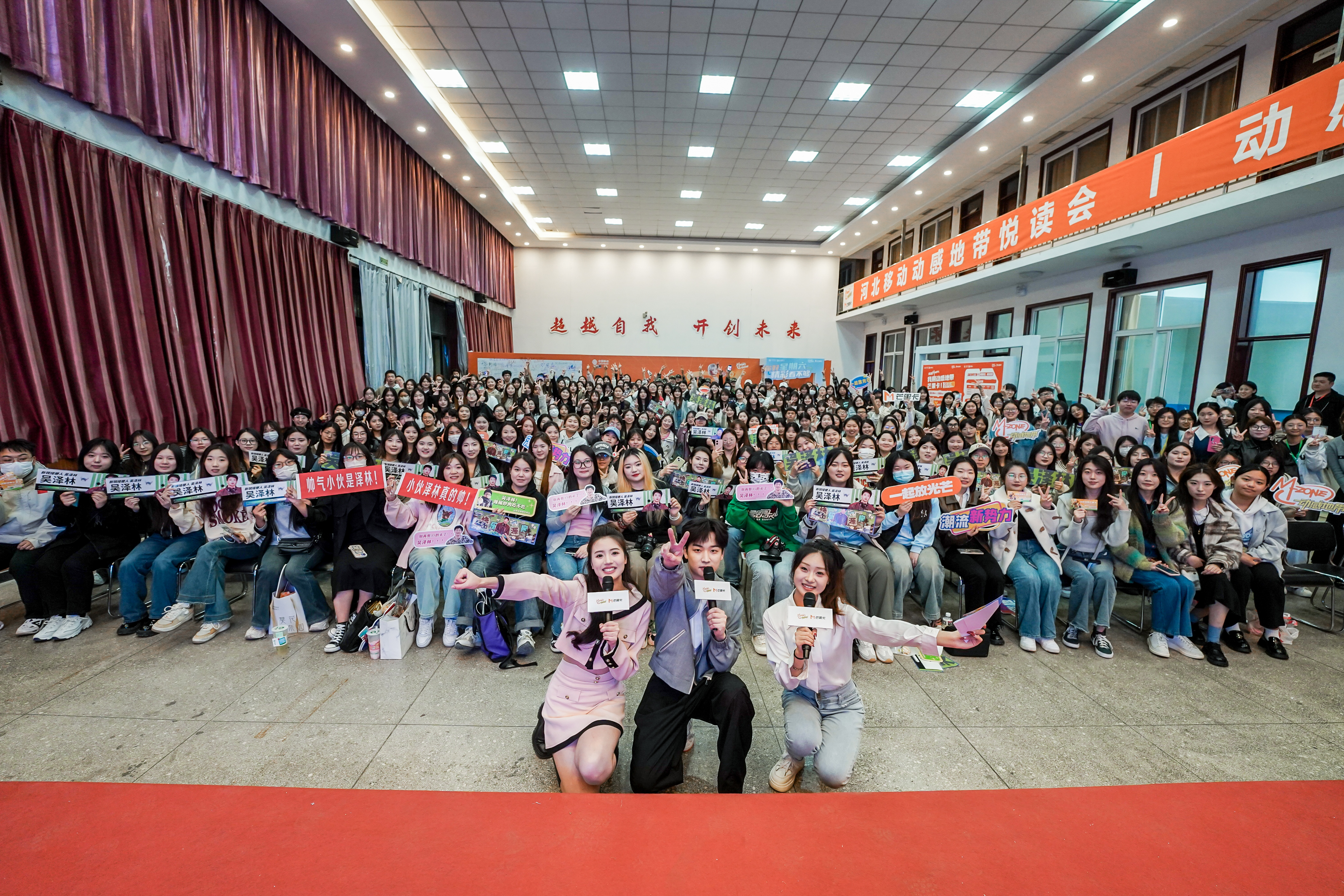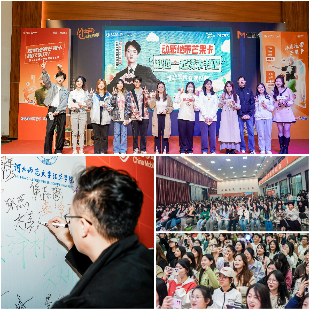3月22日,学院团委在大学生活动中心联合中国移动石家庄分公司动感地带项目组,举办“动感青春派对”读书分享会活动,特邀芒果TV主持人吴泽林到现场与学生进行读书分享,播音主持与艺术专业学生以及各学部学生代表参与现场活动。