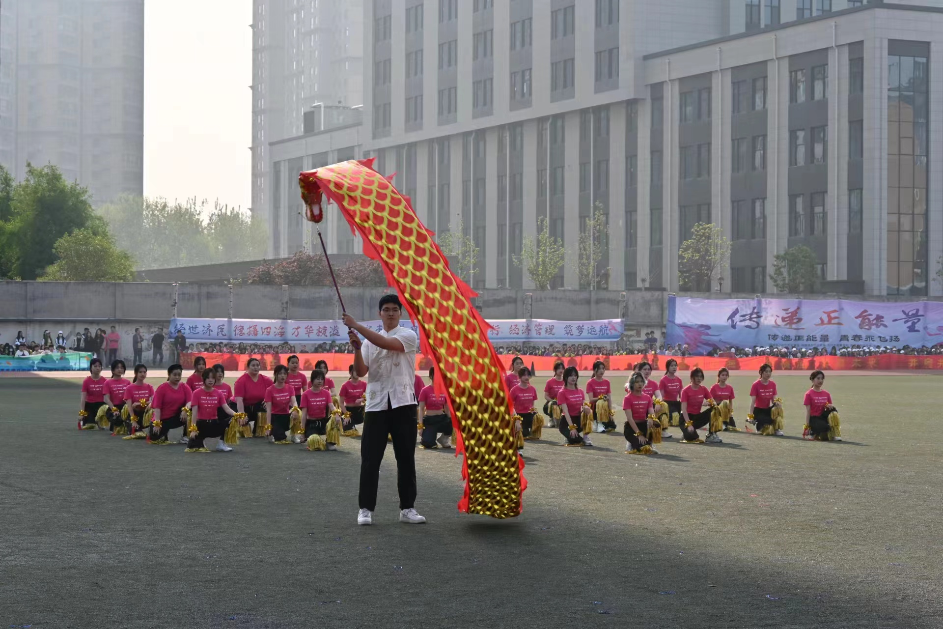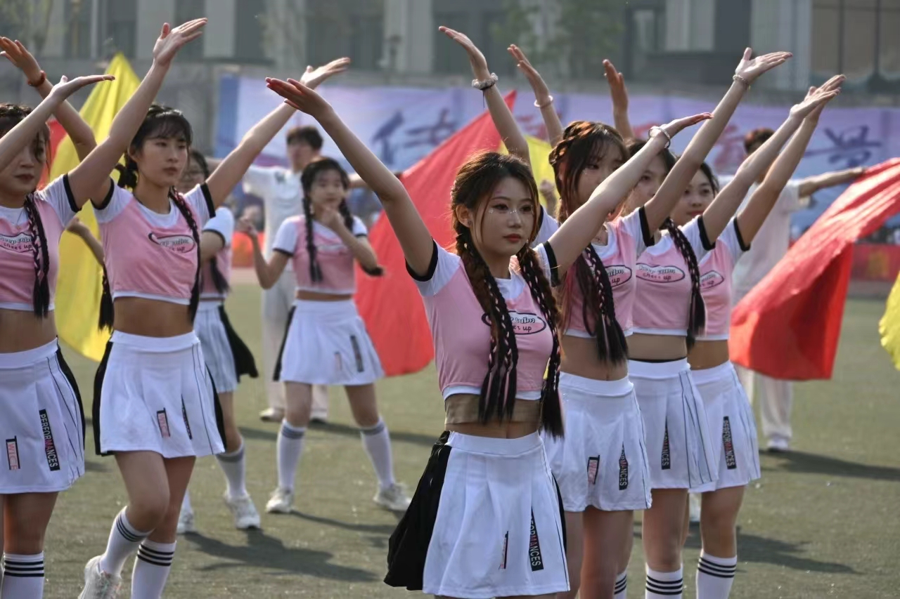 在裁判员代表、运动员代表宣誓之后,开场表演高能来袭,八段锦、kpop、啦啦操等舞蹈新鲜多样,传统元素和流行元素相碰撞,多种风格同台展演,彰显了汇华师生昂扬向上的精神风貌。