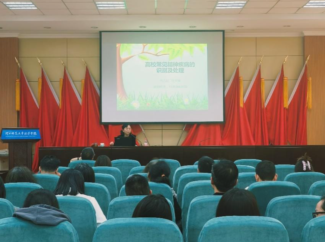 4月25日下午,学生处邀请市八院首席专家,石家庄市医学重点学科带头人、主任医师杜义敏在图书馆一楼报告厅作“高校常见精神障碍识别与应对”主题讲座,Beat365全体学生工作队伍到场聆听。