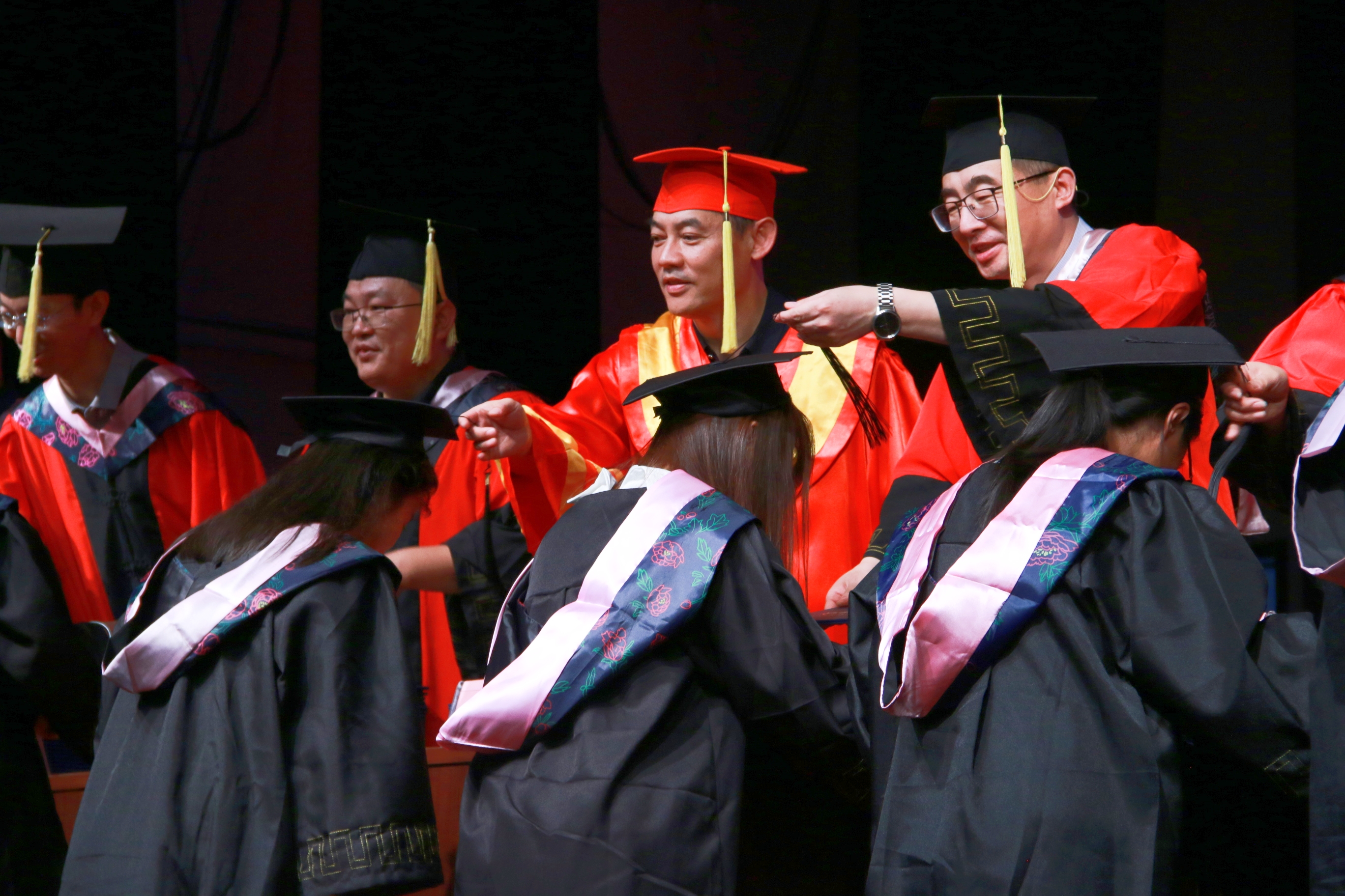 毕业典礼在雄壮的国歌声中拉开序幕。