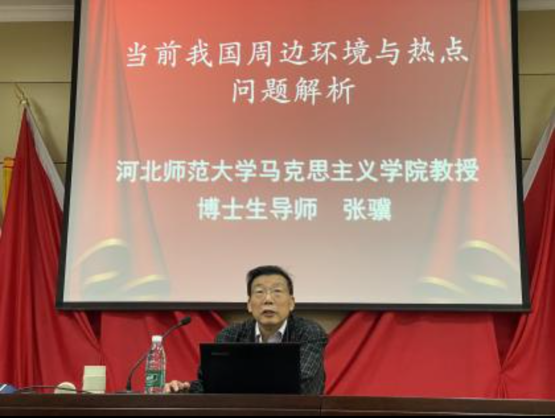 张骥教授以其深厚的学术底蕴和独到的见解,为在场师生带来了一场内容丰富、思想深刻的学术盛宴。他围绕当前我国周边环境与国际热点问题,从国际形势总体特点、中国周边环境面临的新形势与国际热点问题以及当前几个热点问题的具体分析等三个方面进行了深入阐述。